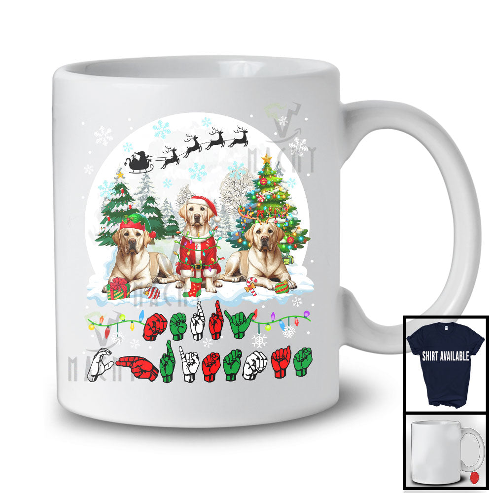 new MacnyStore - Merry Christmas; Fantastic Christmas Moon Three Labrador Retrievers; ASL Sign Language Moon T-Shirt – Macnystore