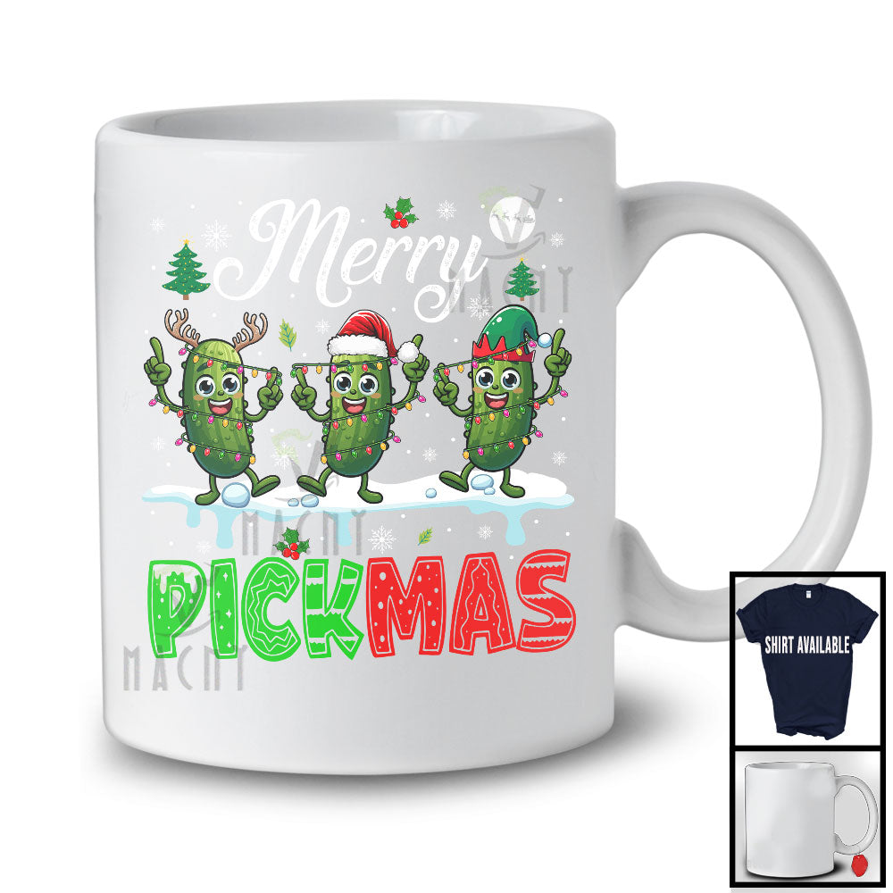 Merry Pickmas; Amazing Christmas Three Santa Elf Reindeer Pickle; Vegan Group T-Shirt