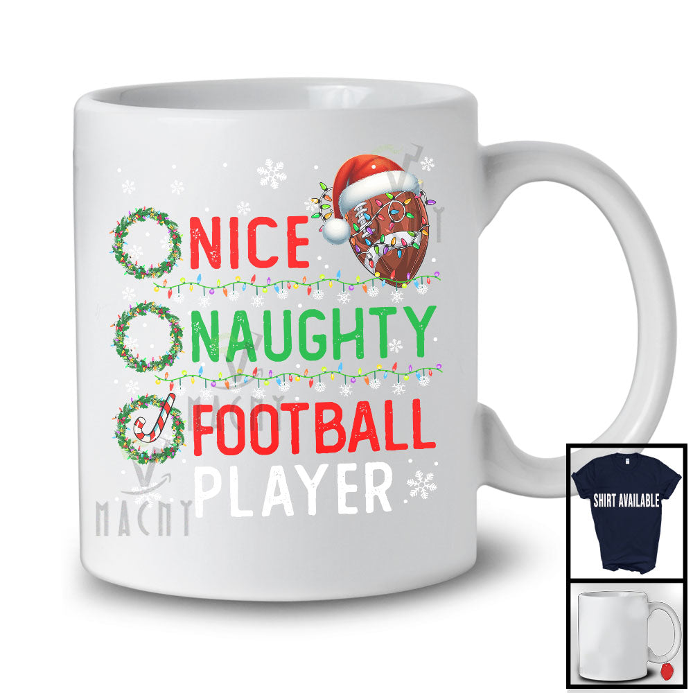 The Nice Naughty Football Player; Amazing Christmas Santa List; X-mas Sport Player Team T-Shirt is the product you didn't think you need, but once you have it, something you won't want to live without.