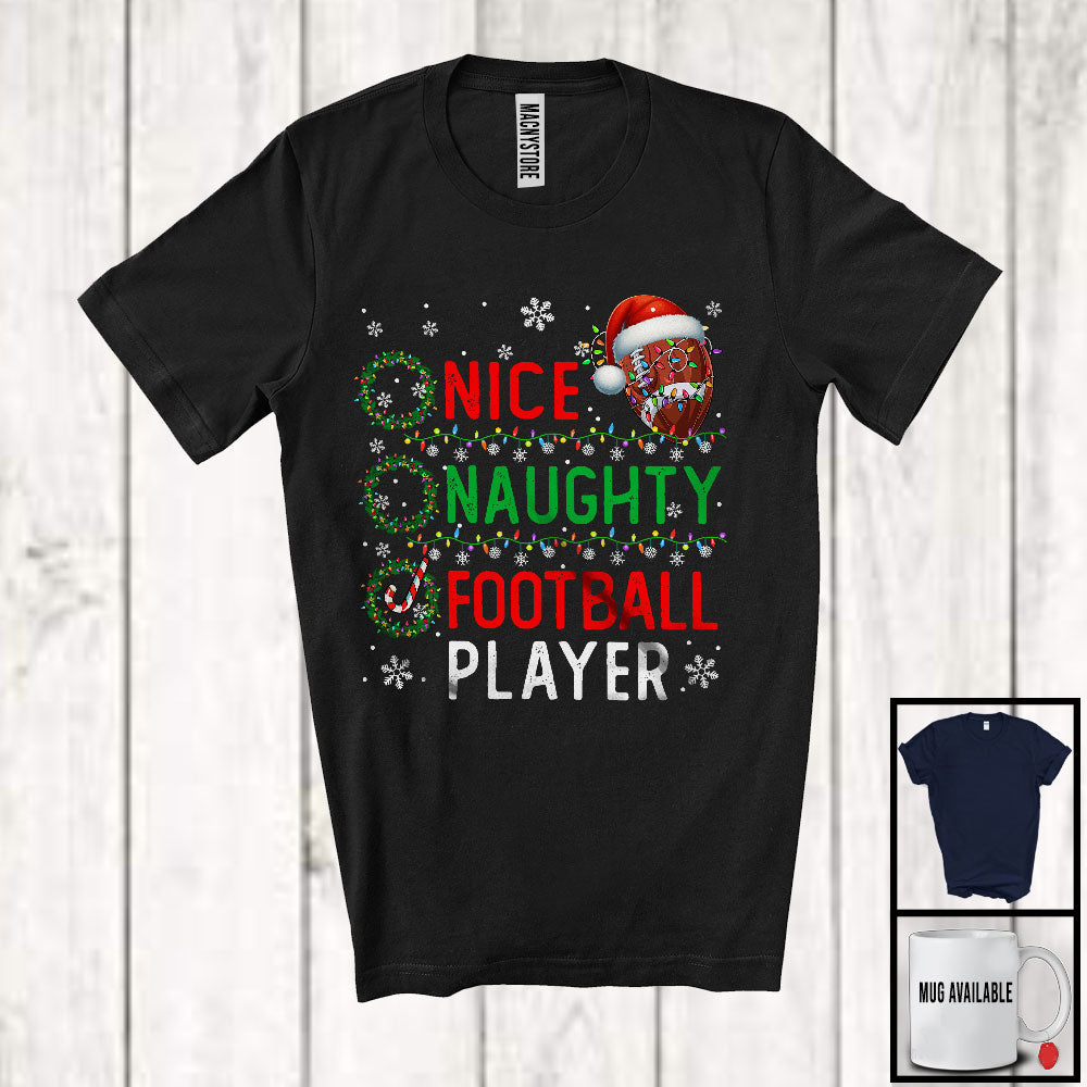 Nice Naughty Football Player; Amazing Christmas Santa List; X-mas Sport Player Team T-Shirt