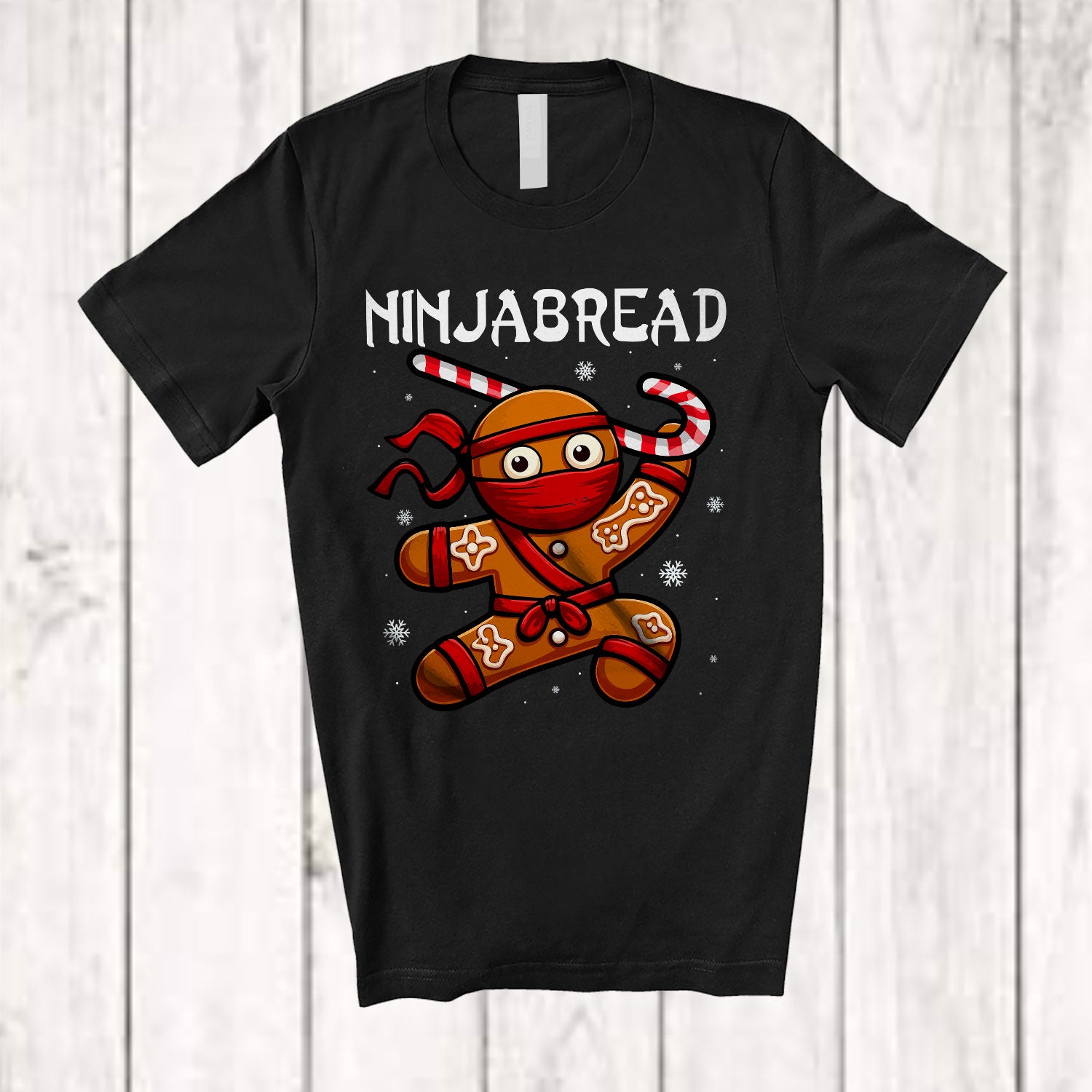 • Ninjabread; Amusing Christmas Cookie Gingerbread Ninja; Baker Baking Lover Family T-Shirt. This cotton t-shirt is a durable staple product with a classic fit. One of the most popular items, it has a relaxed style made for everyday and casual wear.
