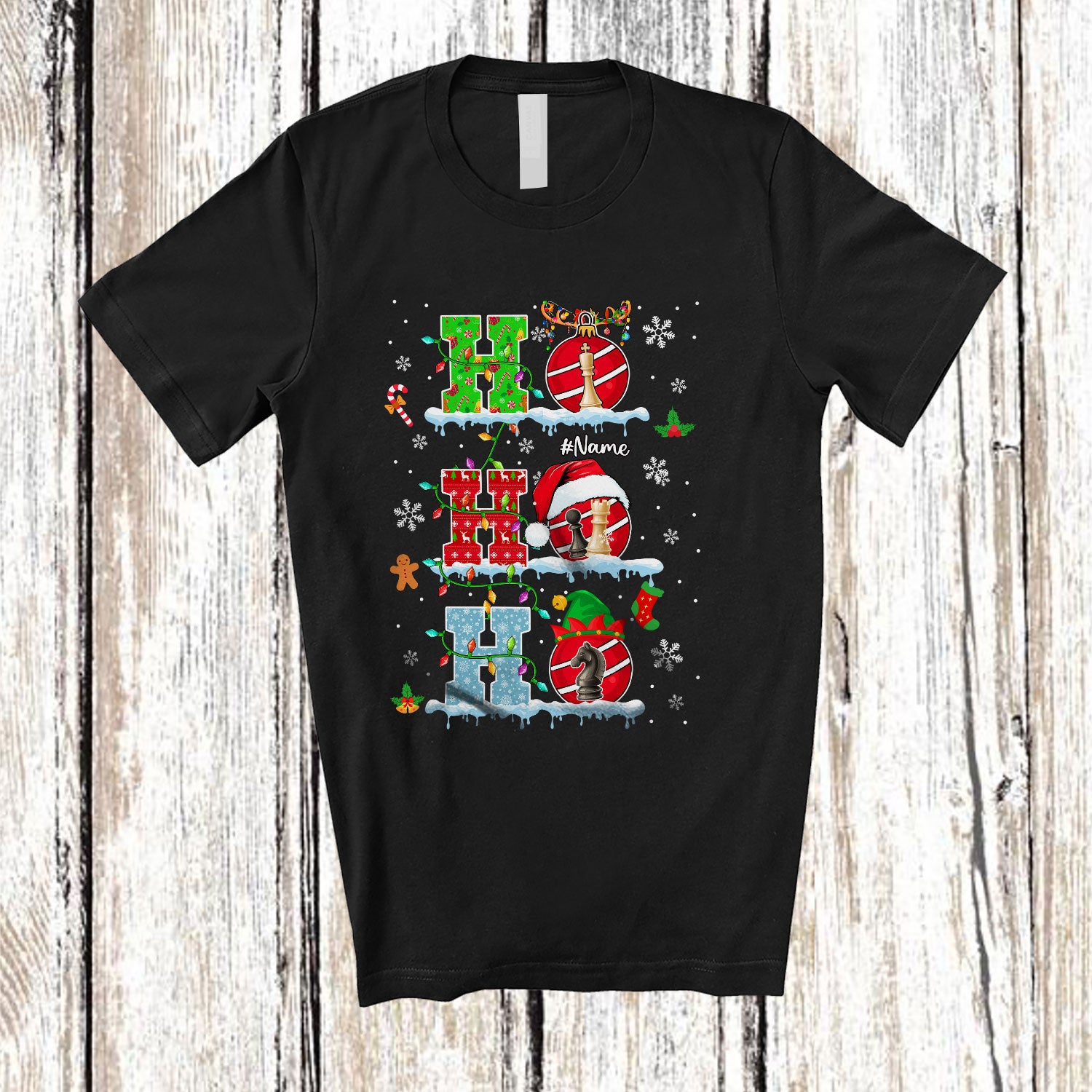 Personalized 3Ho Chess; Joyful Christmas Santa Chess Custom Name Player; Snow Family T-Shirt