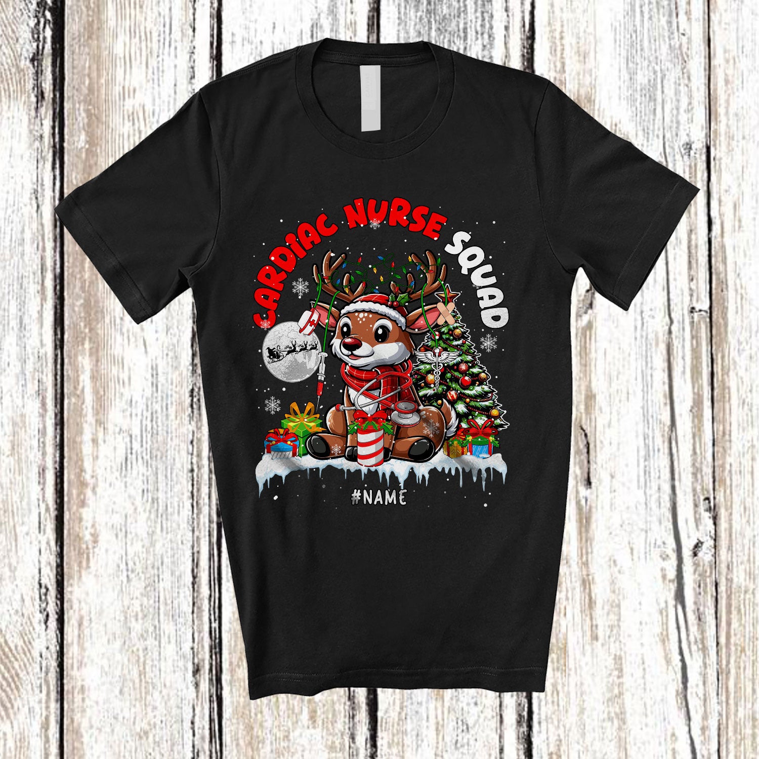 Personalized Cardiac Nurse Squad; Wonderful Christmas Tree Reindeer; Custom Name Nurse Group T-Shirt