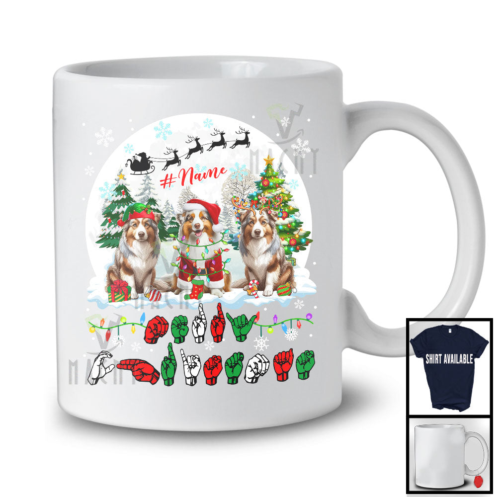 This Personalized Christmas; Lovely Custom Name Australian Shepherds; ASL Sign Language Moon T-Shirt is great idea gift for your family, friends in this birthday, christmas, mother's day, father's day, patrick's day or any holiday.