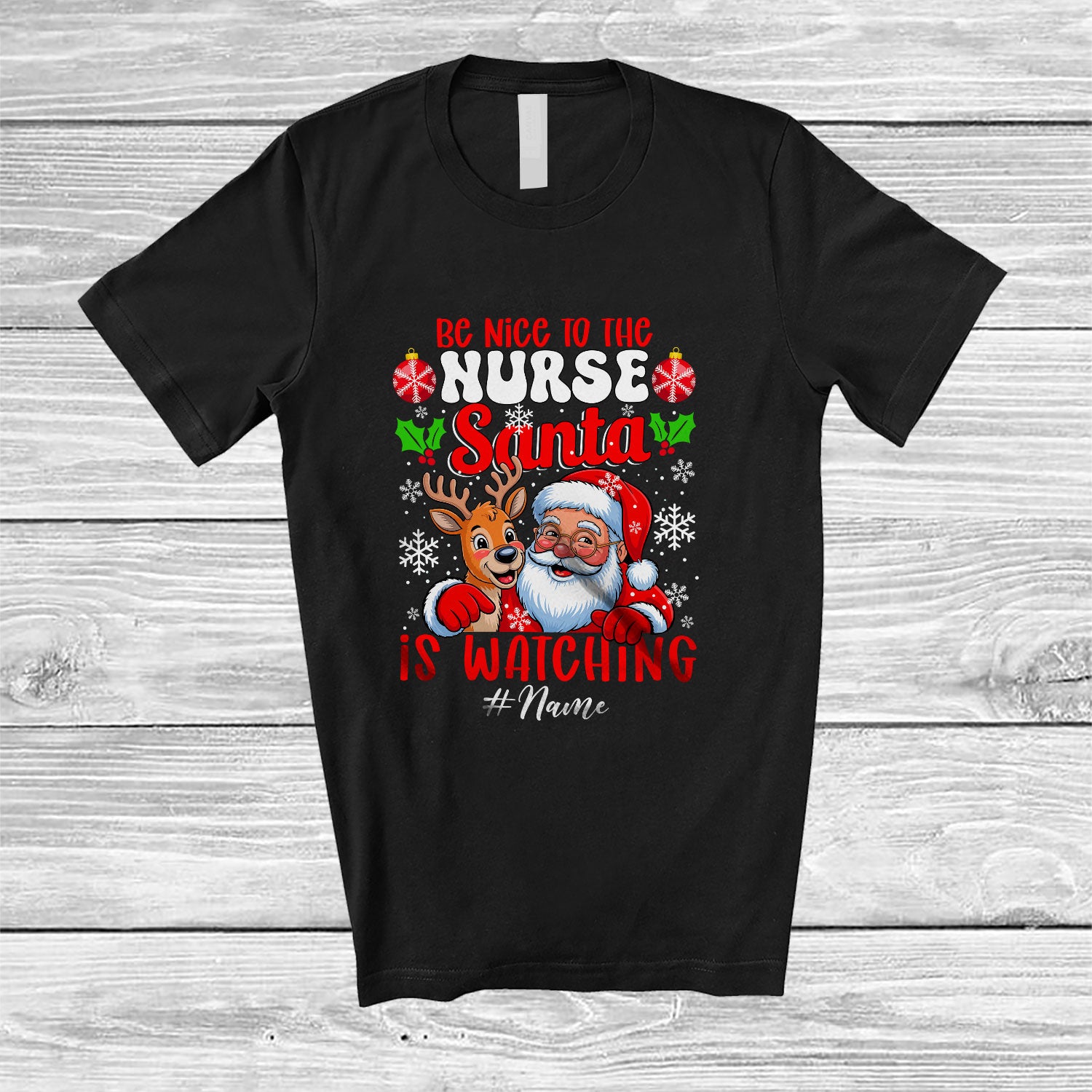Personalized Custom Name Be Nice To Nurse; Joyful Christmas Santa Reindeer; Women Jobs T-Shirt
