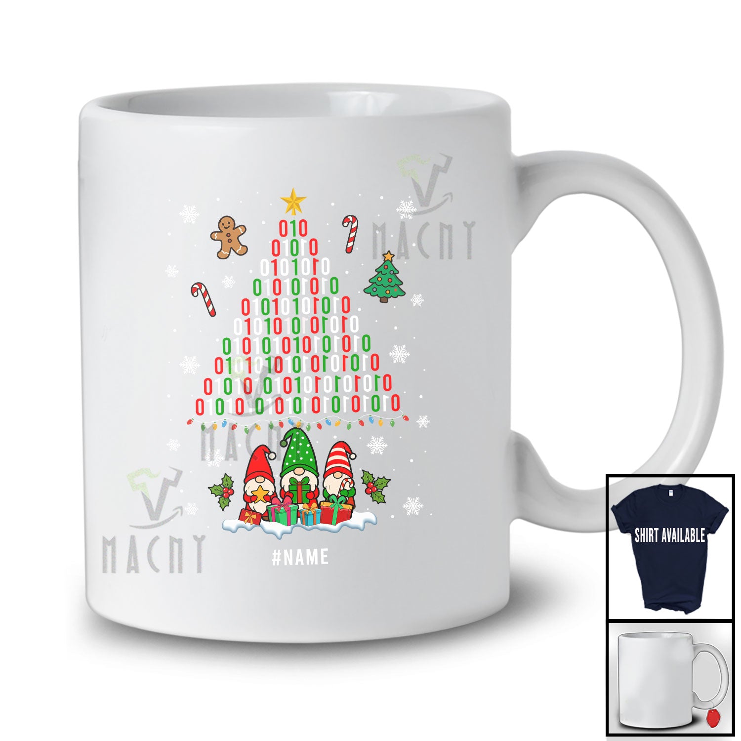 Personalized Custom Name Binary Code 01 Christmas Tree; Lovely Three Gnomes; Coder Computer T-Shirt