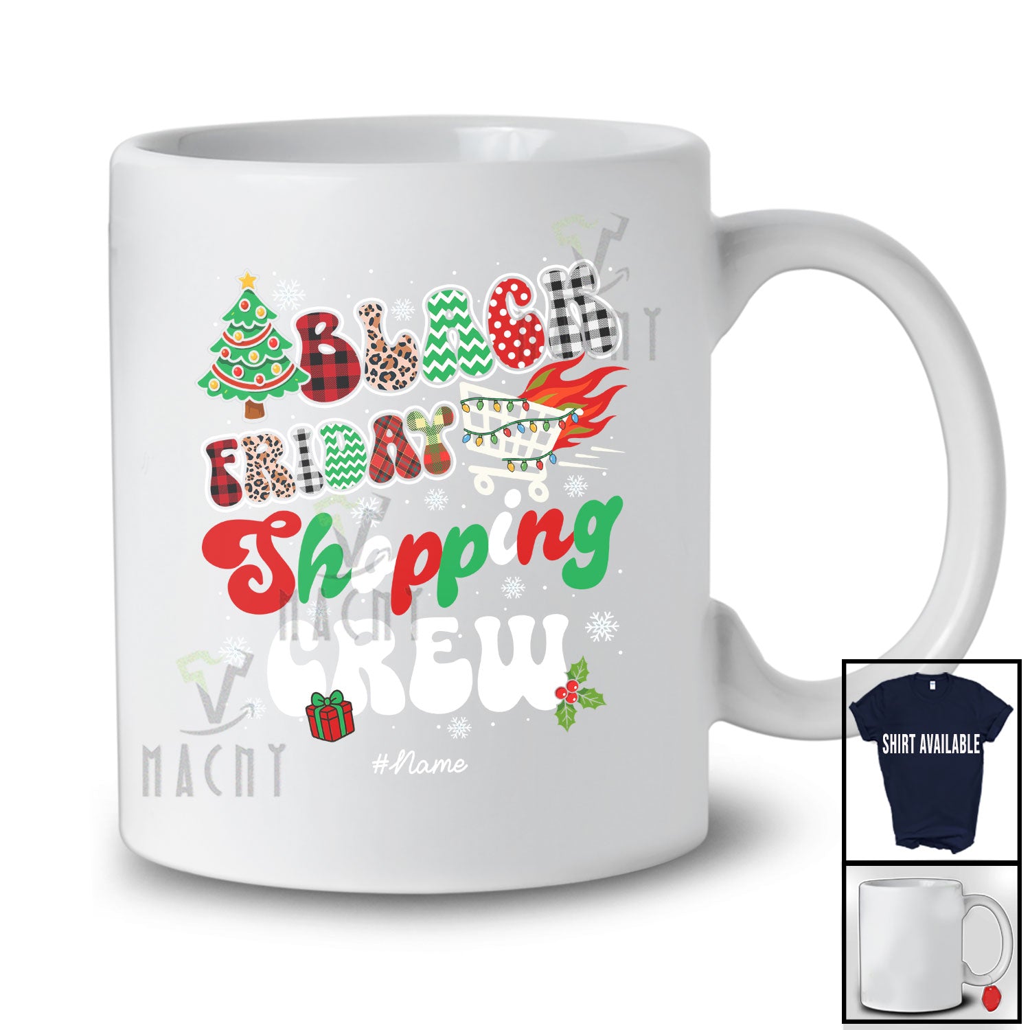new MacnyStore - Personalized Custom Name Black Friday Shopping Crew; Cheerful Christmas Plaid Leopard Family T-Shirt – Macnystore