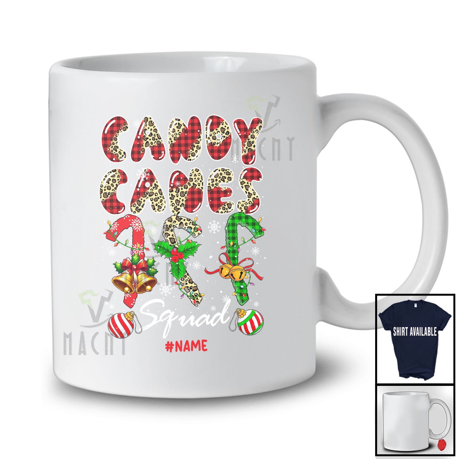 Personalized Custom Name Candy Canes Squad; Merry Christmas Three Leopard Plaid Candy Canes T-Shirt. This cotton t-shirt is a durable staple product with a classic fit. One of the most popular items, it has a relaxed style made for everyday and casual wear.