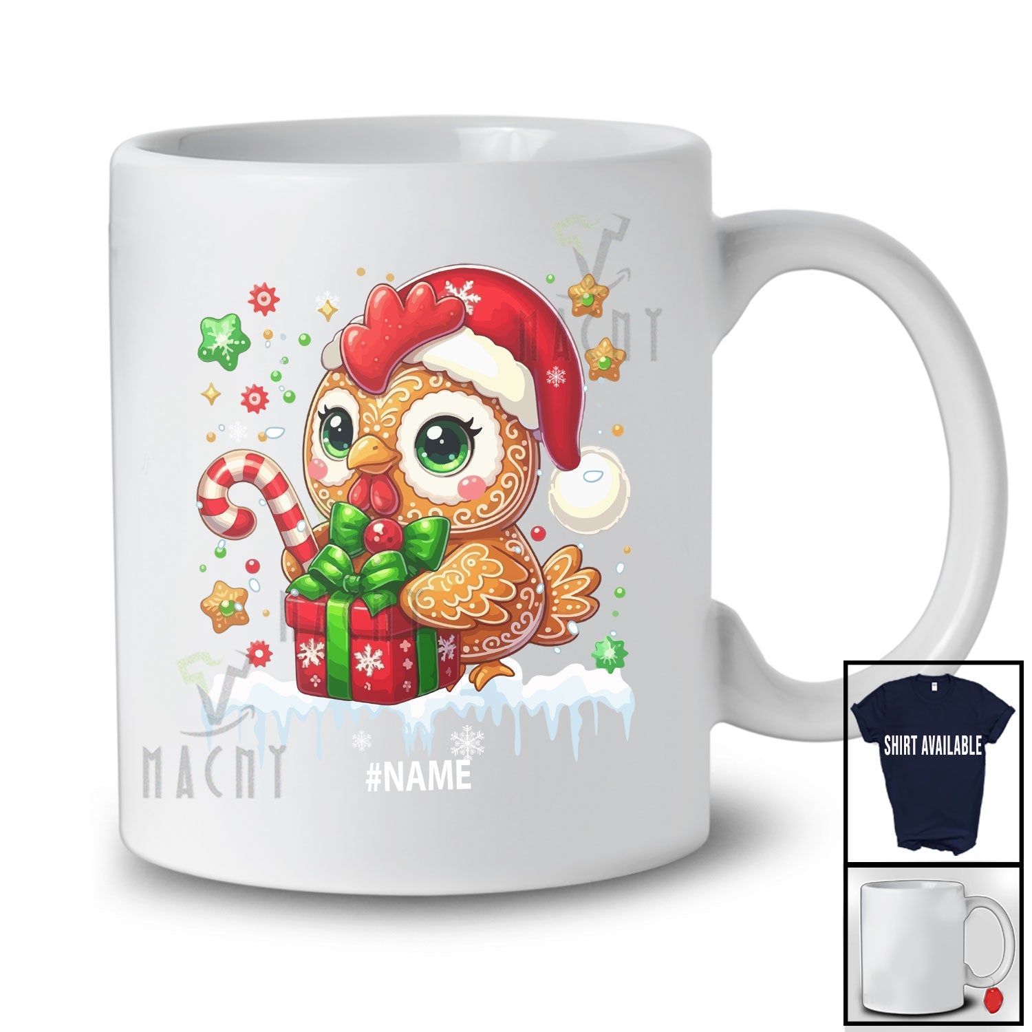 This Personalized Custom Name Chicken Santa Gingerbread; Adorable Christmas Baking Baker T-Shirt is great idea gift for your family, friends in this birthday, christmas, mother's day, father's day, patrick's day or any holiday.