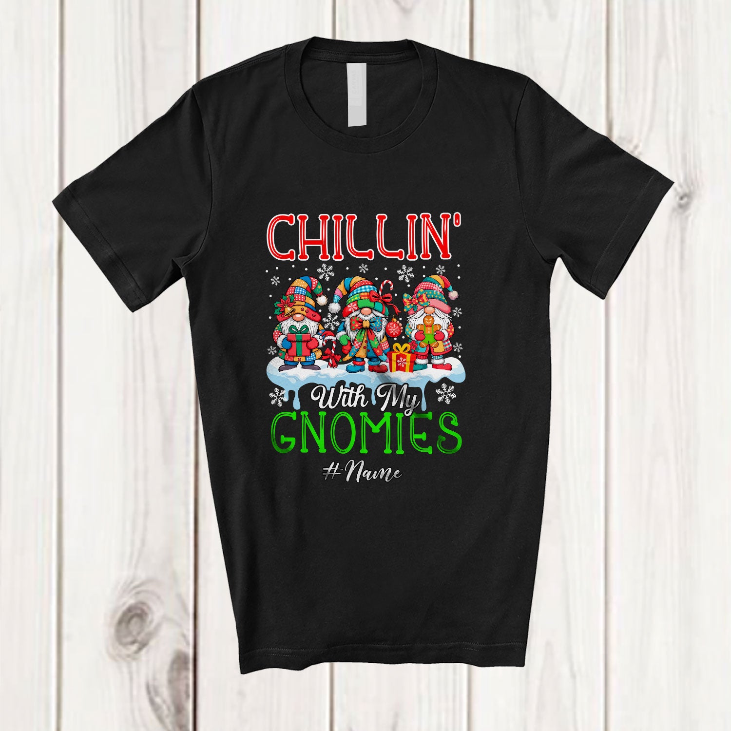 Personalized Custom Name Chillin' With My Gnomies; Amazing Christmas Three Gnomes Plaid; Family T-Shirt
