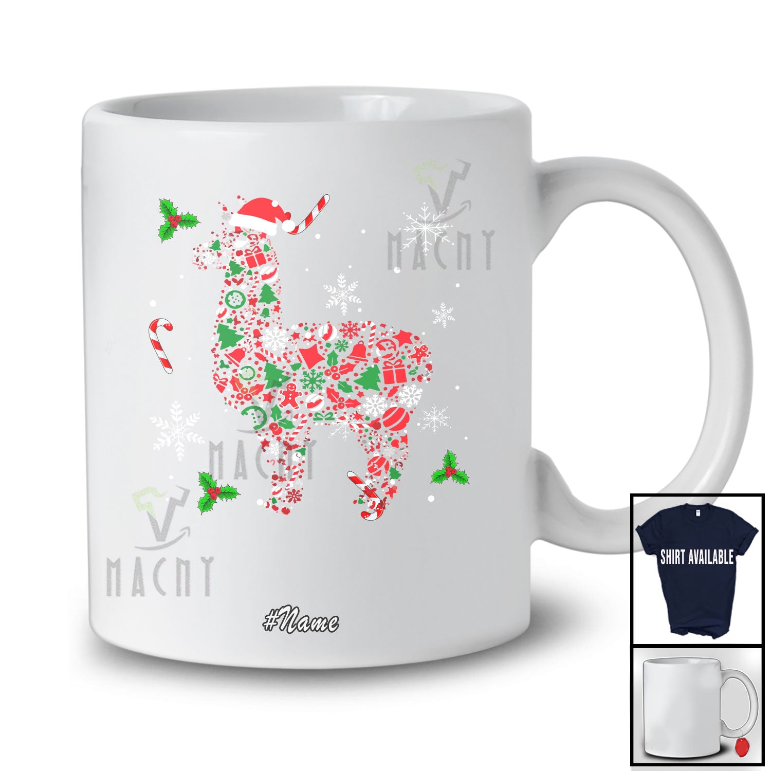 new MacnyStore - Personalized Custom Name Christmas Collection Santa Llama Shape; Adorable X-mas Animal T-Shirt – Macnystore