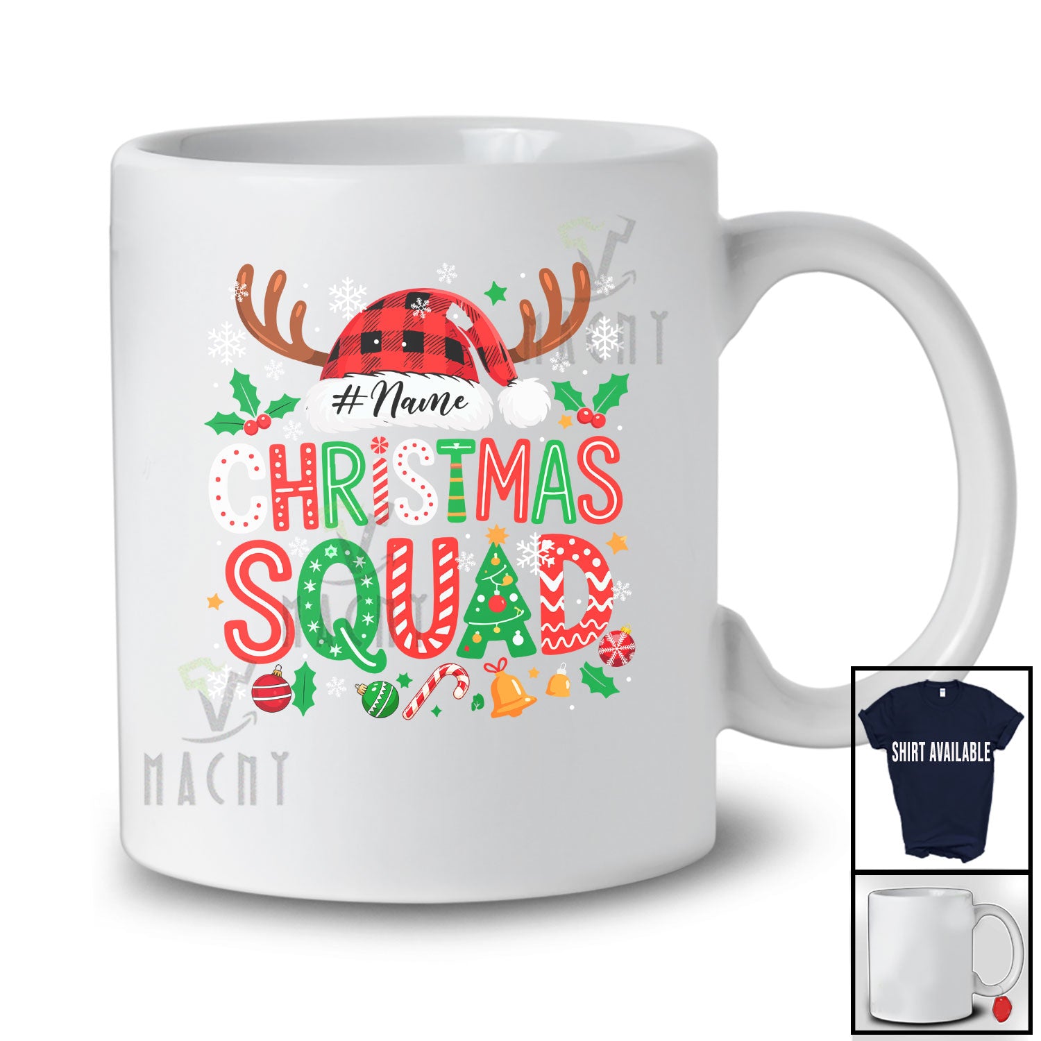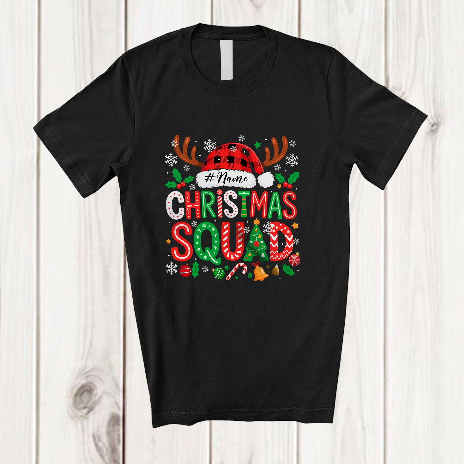 Personalized Custom Name Christmas Squad; Awesome Plaid Santa Reindeer; Snow X-mas Family T-Shirt. This cotton t-shirt is a durable staple product with a classic fit. One of the most popular items, it has a relaxed style made for everyday and casual wear.