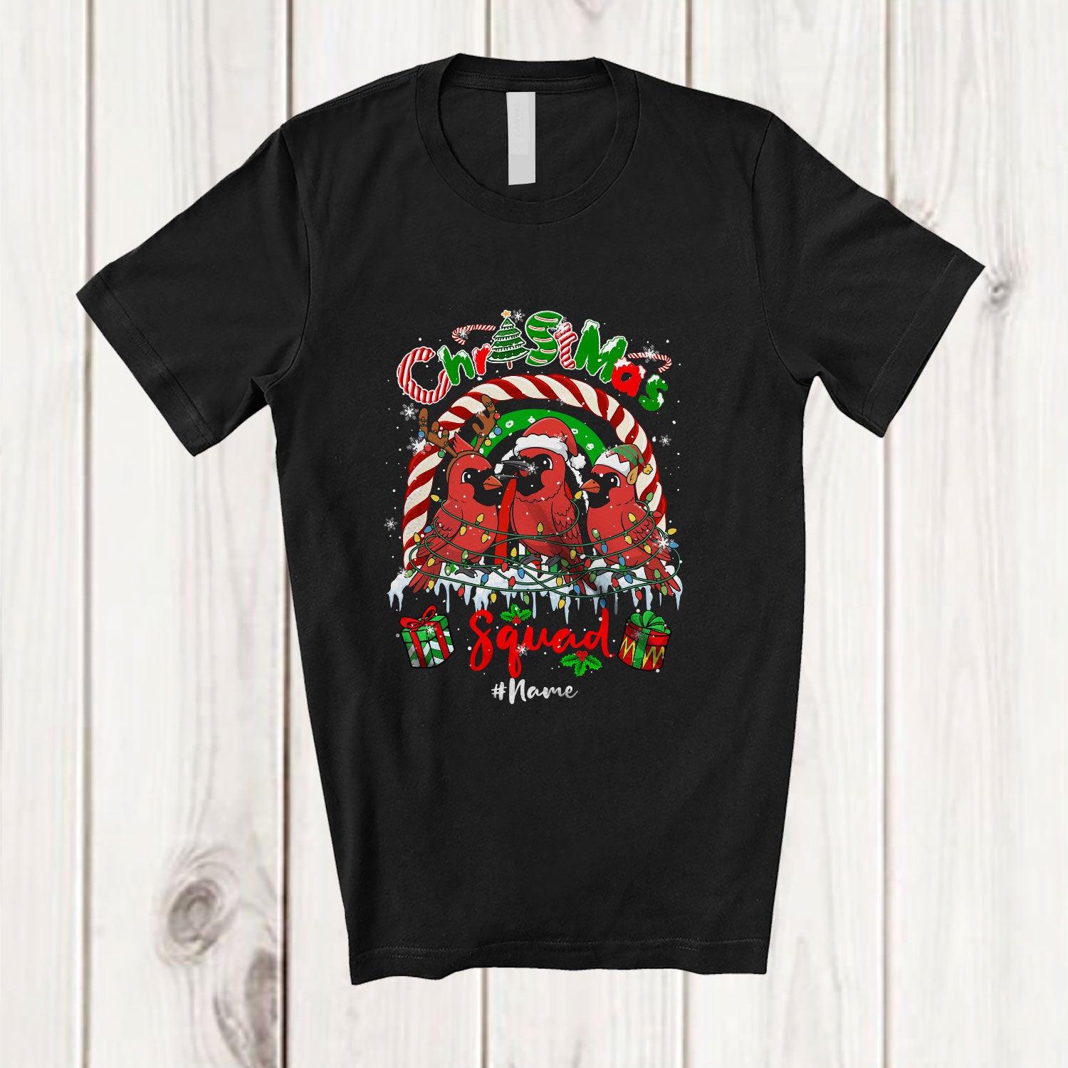 Personalized Custom Name Christmas Squad; Joyful Three Cardinal Bird Collection Rainbow; Animal T-Shirt