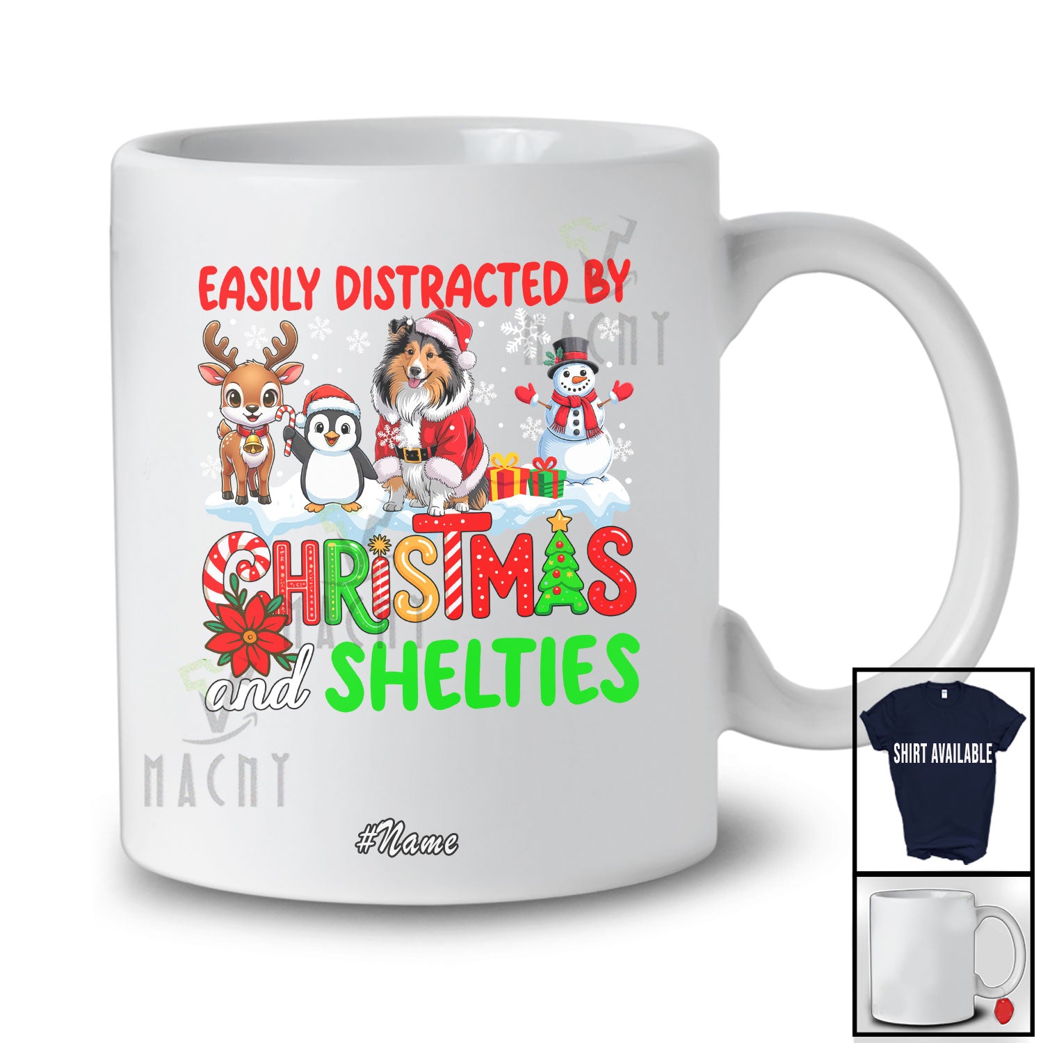 This Personalized Custom Name Distracted By Christmas Shelties; Lovely Snowman Penguin Reindeer T-Shirt is great idea gift for your family, friends in this birthday, christmas, mother's day, father's day, patrick's day or any holiday.