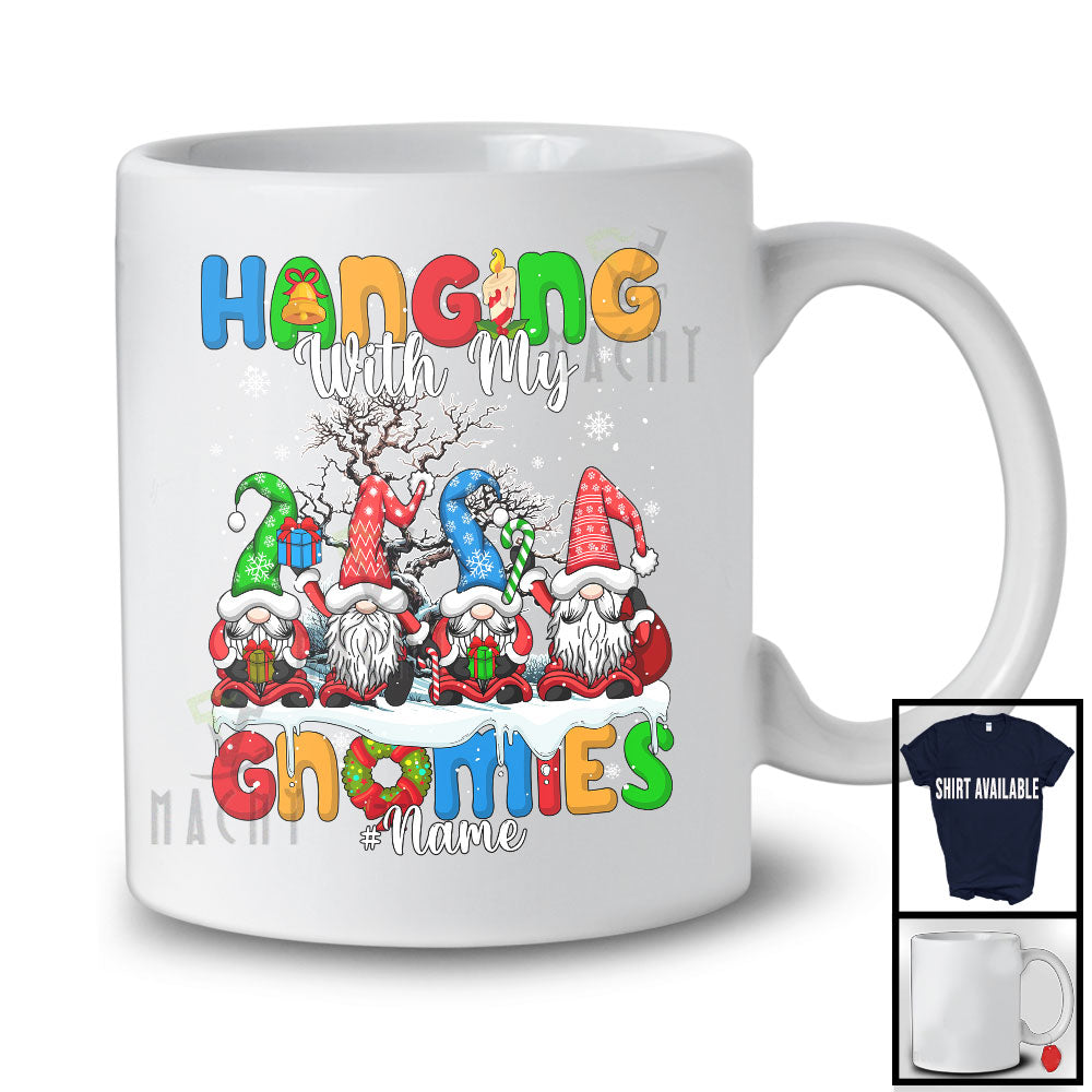 Personalized Custom Name Hanging With My Gnomies, Lovely Christmas Tree Four Gnomes, Candy Cane T-Shirt