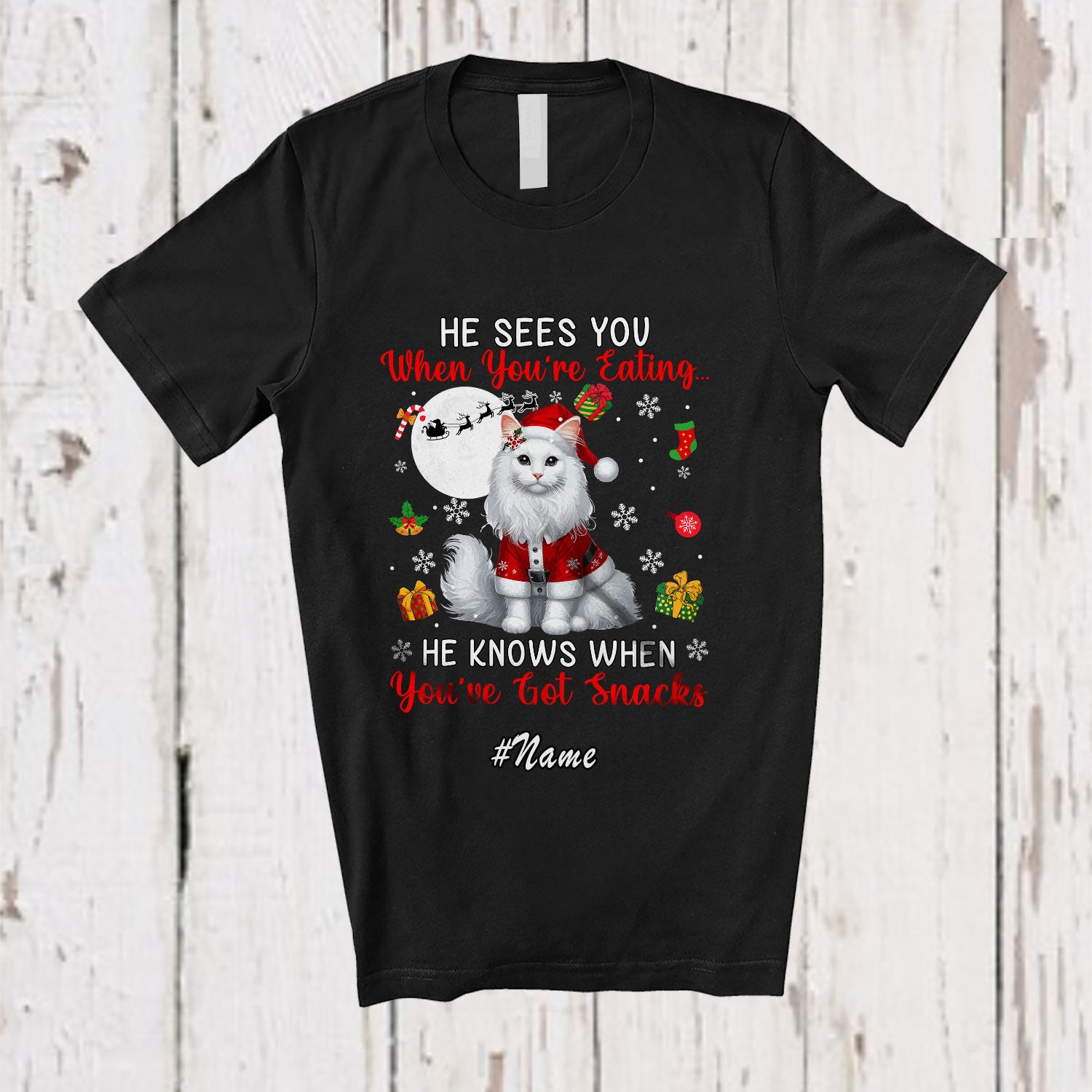 new MacnyStore - Personalized Custom Name He Sees You When You're Eating; Lovely Christmas Santa Cat Owner T-Shirt – Macnystore