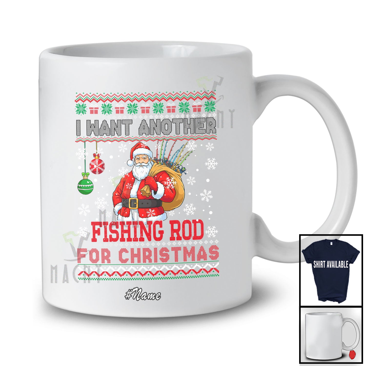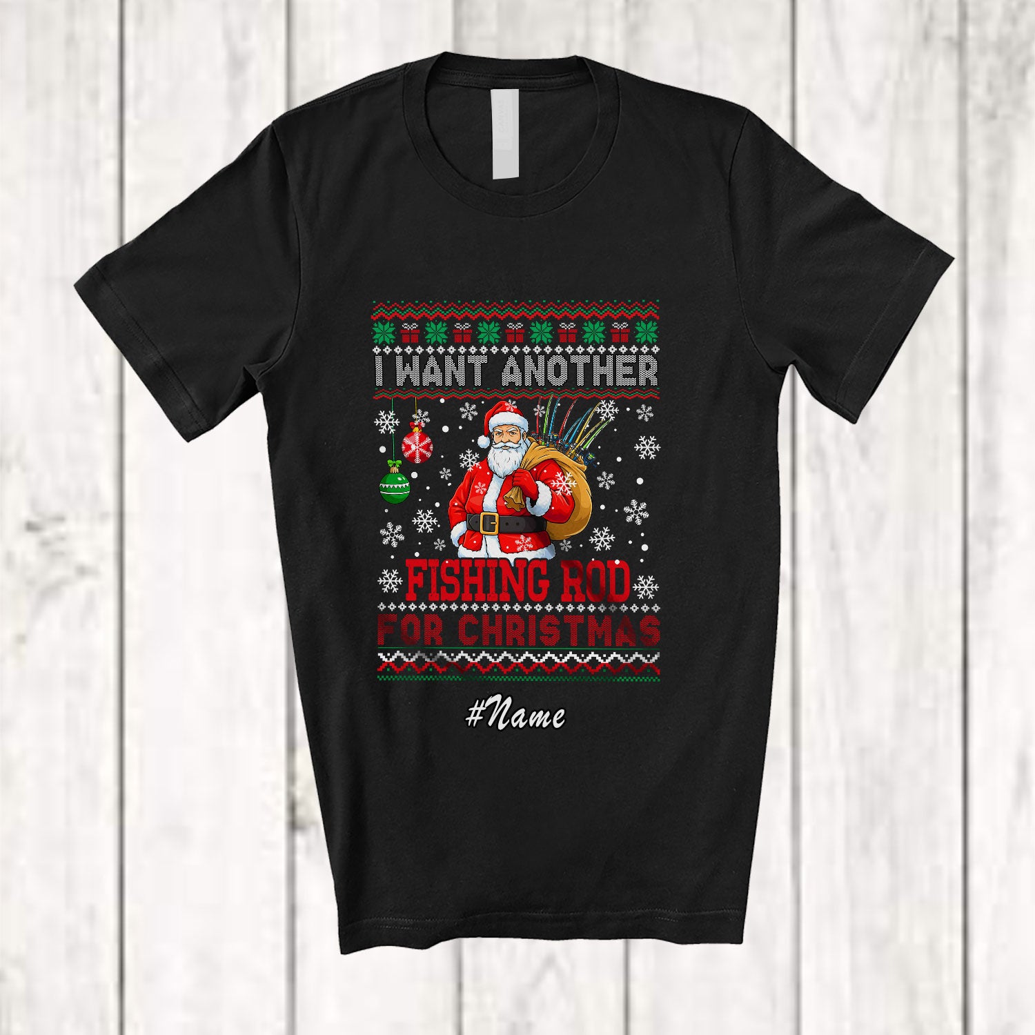 • Personalized Custom Name I Want Another Fishing Rod Christmas; Humorous Sweater Santa Fisherman T-Shirt. This cotton t-shirt is a durable staple product with a classic fit. One of the most popular items, it has a relaxed style made for everyday and casual wear.