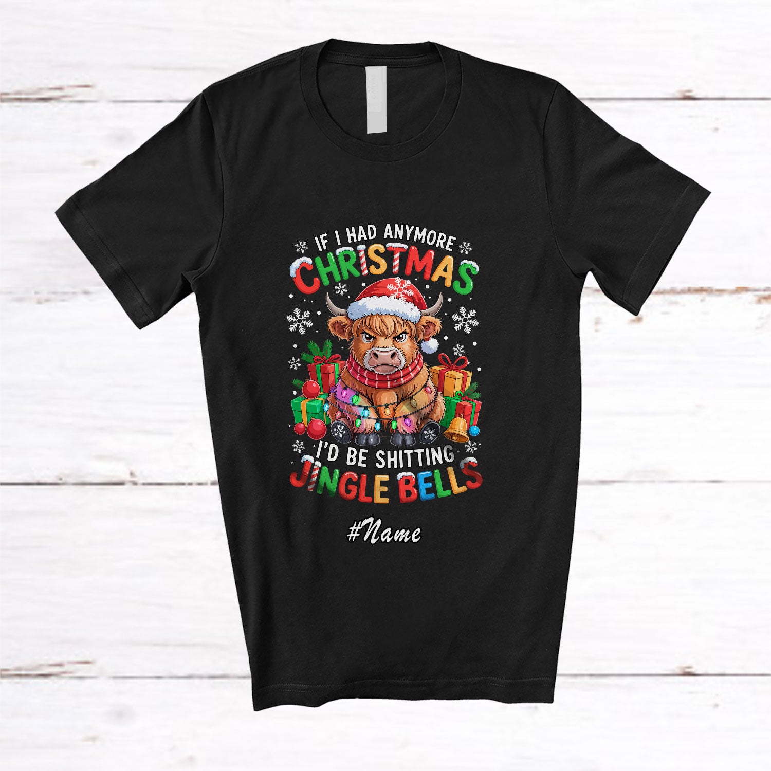 Personalized Custom Name If I Had Anymore Christmas; Humorous Highland Cow Adult Family T-Shirt