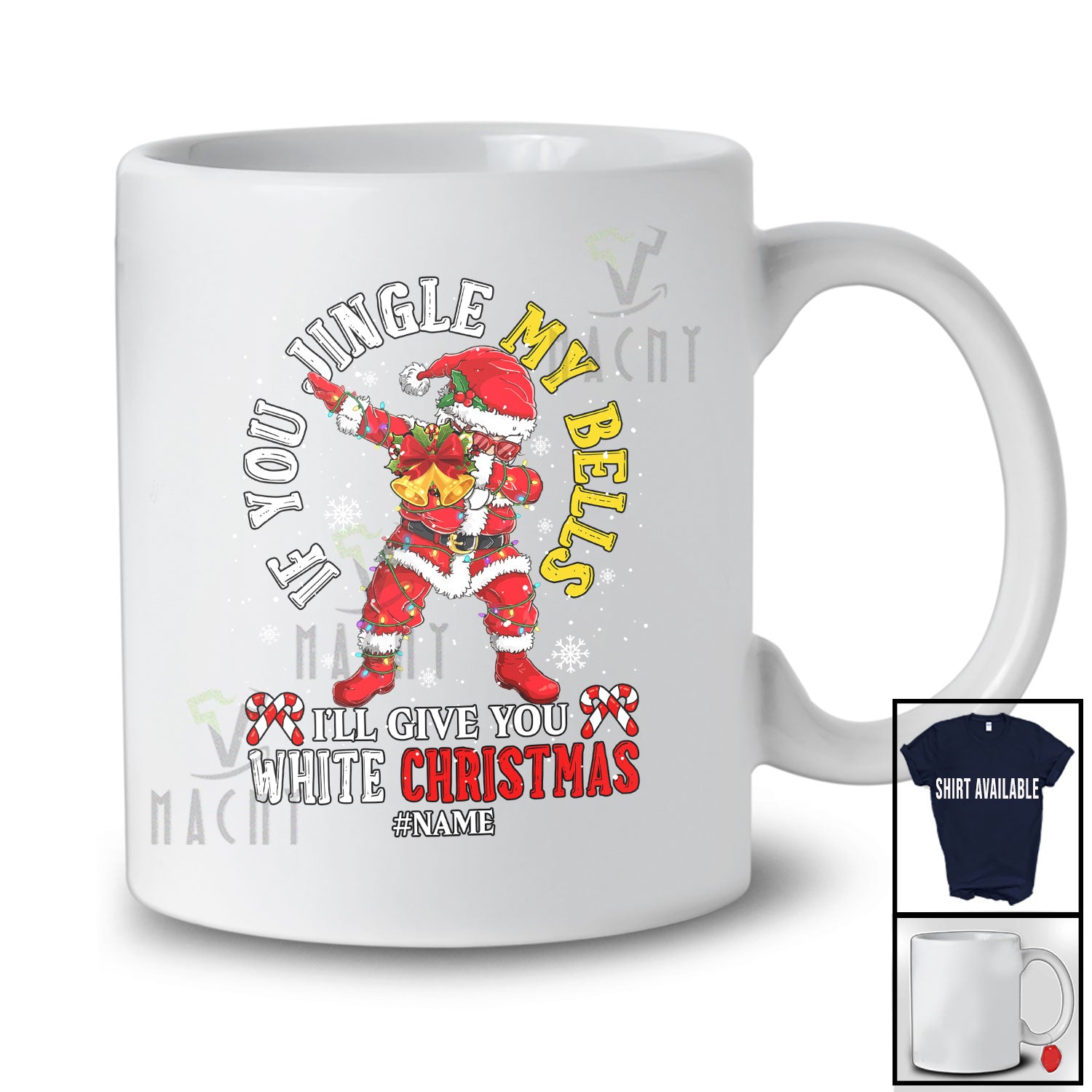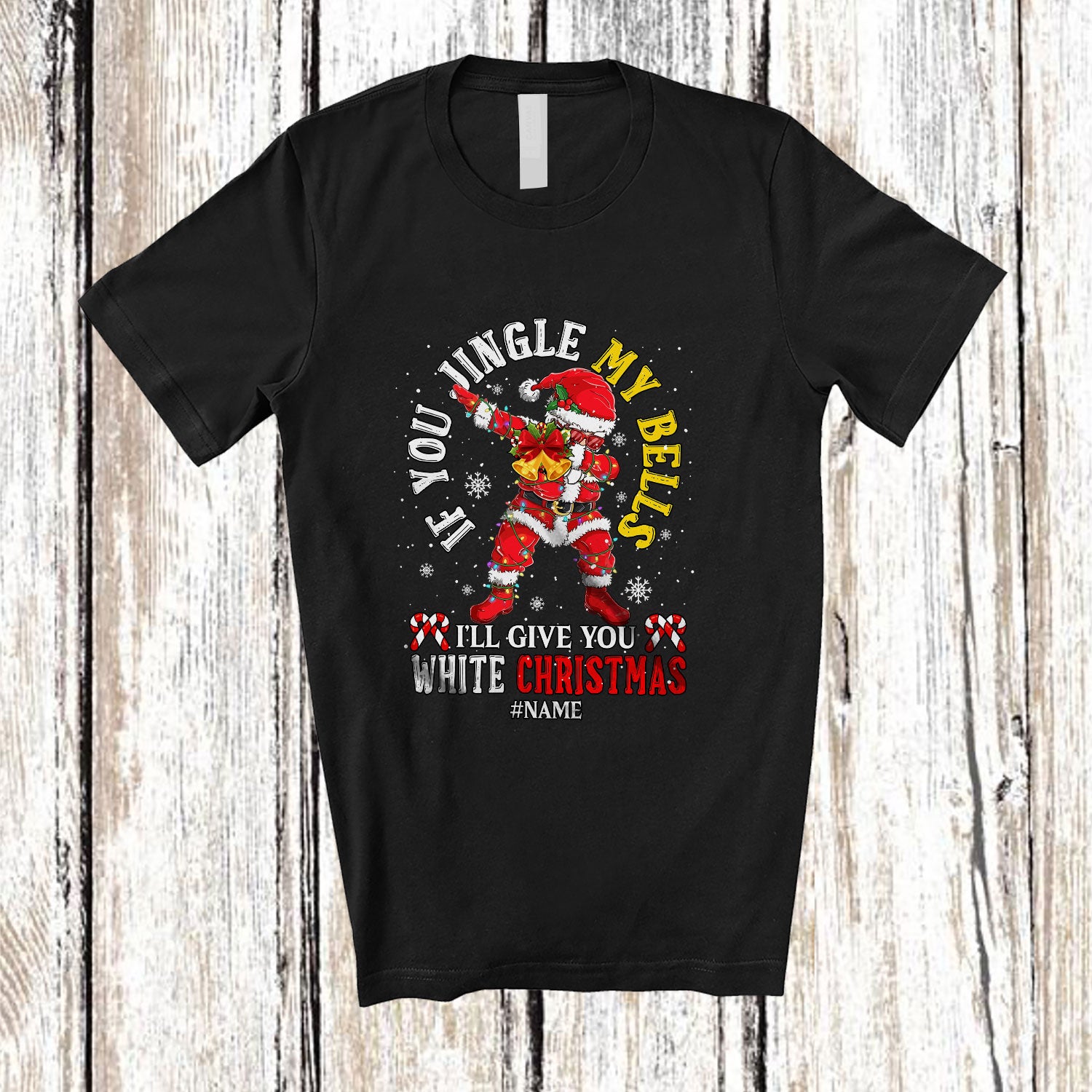 • Personalized Custom Name If You Jingle My Bells White Christmas; Humorous X-mas Dabbing Santa T-Shirt. This cotton t-shirt is a durable staple product with a classic fit. One of the most popular items, it has a relaxed style made for everyday and casual wear.