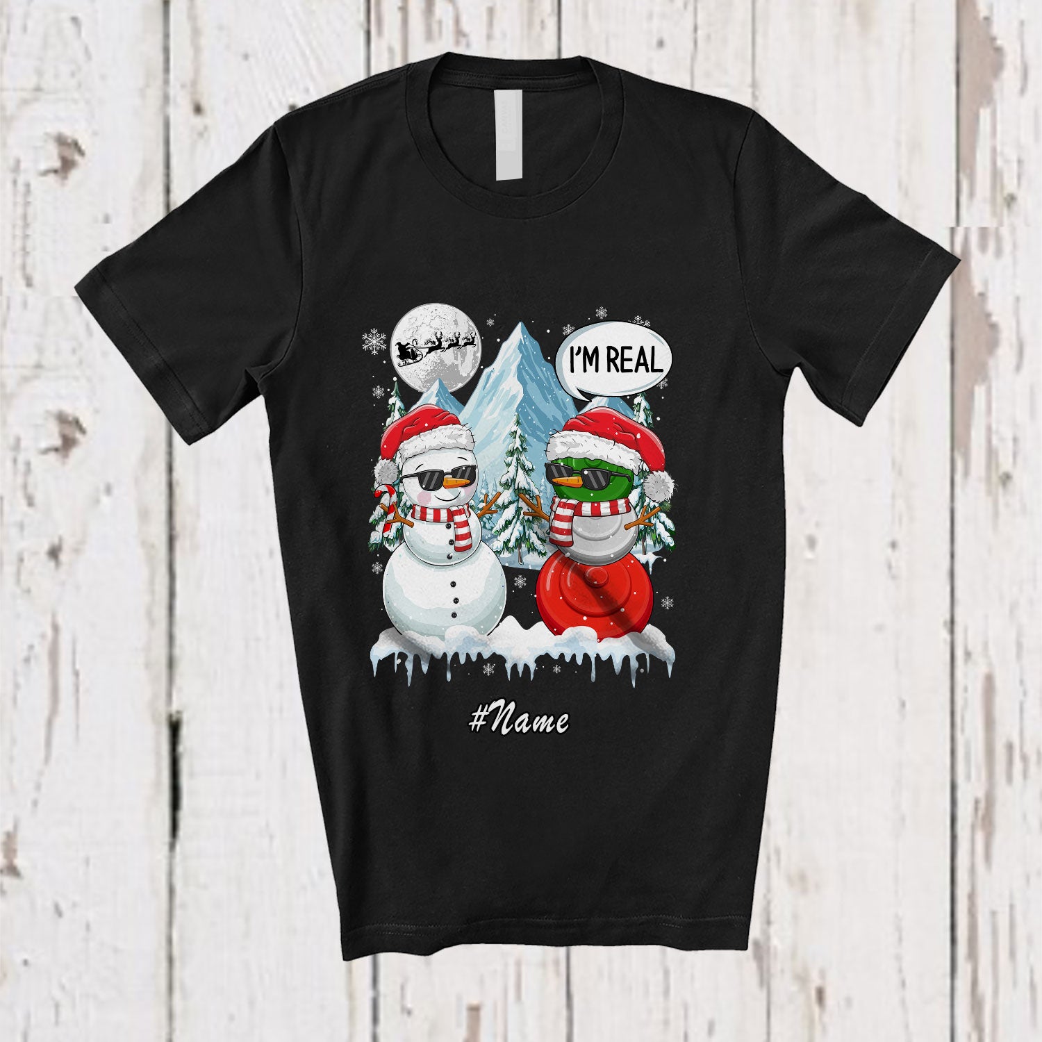 Personalized Custom Name I'm Real Snowman; Humorous Christmas Disc Golf Player Sport T-Shirt. This cotton t-shirt is a durable staple product with a classic fit. One of the most popular items, it has a relaxed style made for everyday and casual wear.