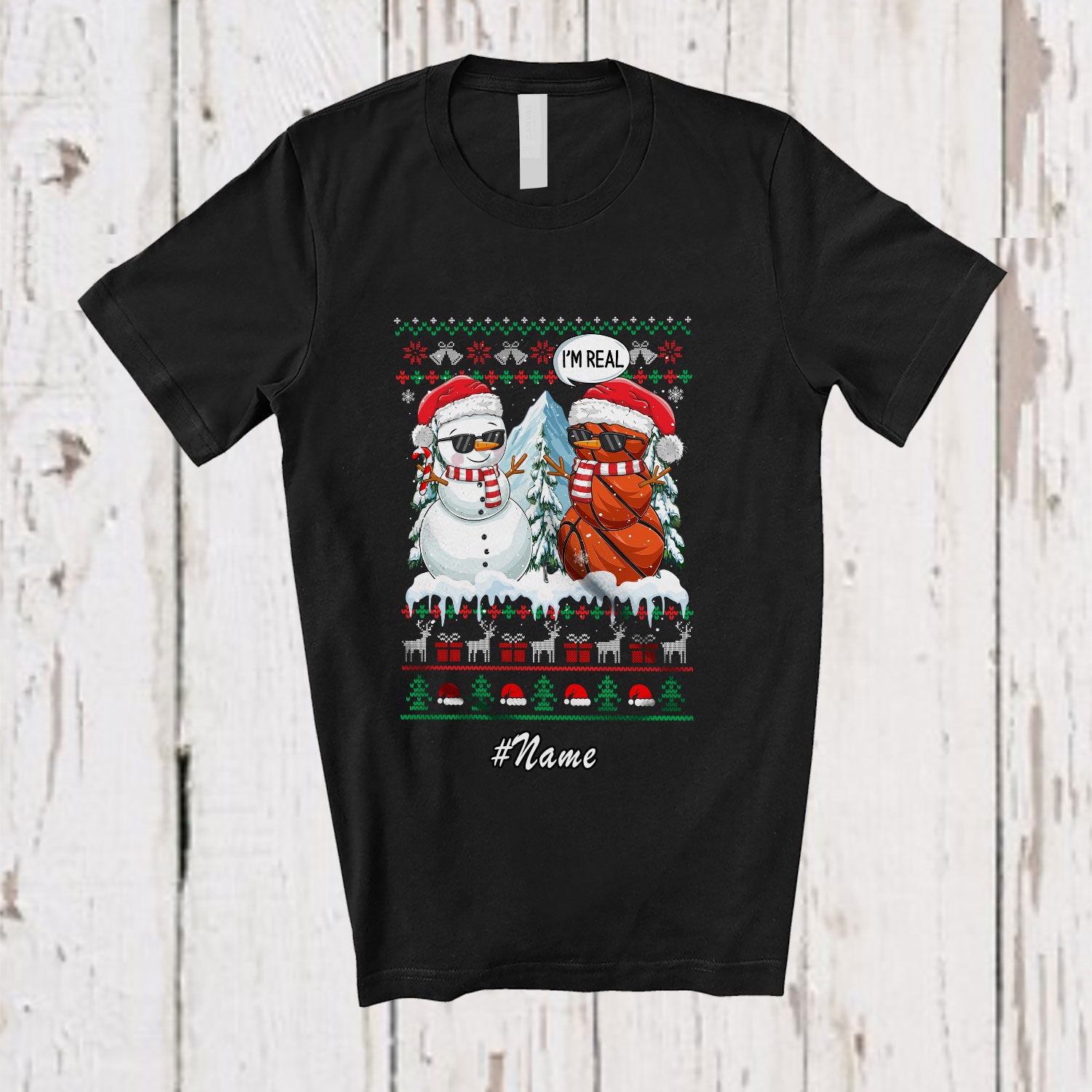 • Personalized Custom Name I'm Real Snowman; Humorous Christmas Sweater Basketball Player T-Shirt. This cotton t-shirt is a durable staple product with a classic fit. One of the most popular items, it has a relaxed style made for everyday and casual wear.