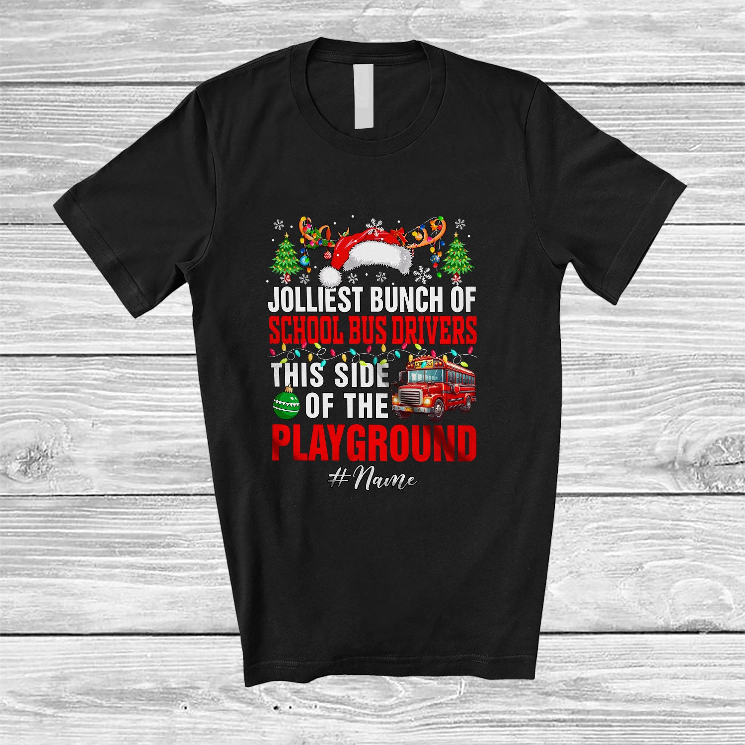 Every product is unique, just like you. If you're looking for a product that fits the mold of your life, the Personalized Custom Name Jolliest Bunch Of School Bus Drivers; Proud Christmas Santa Reindeer T-Shirt is for you.