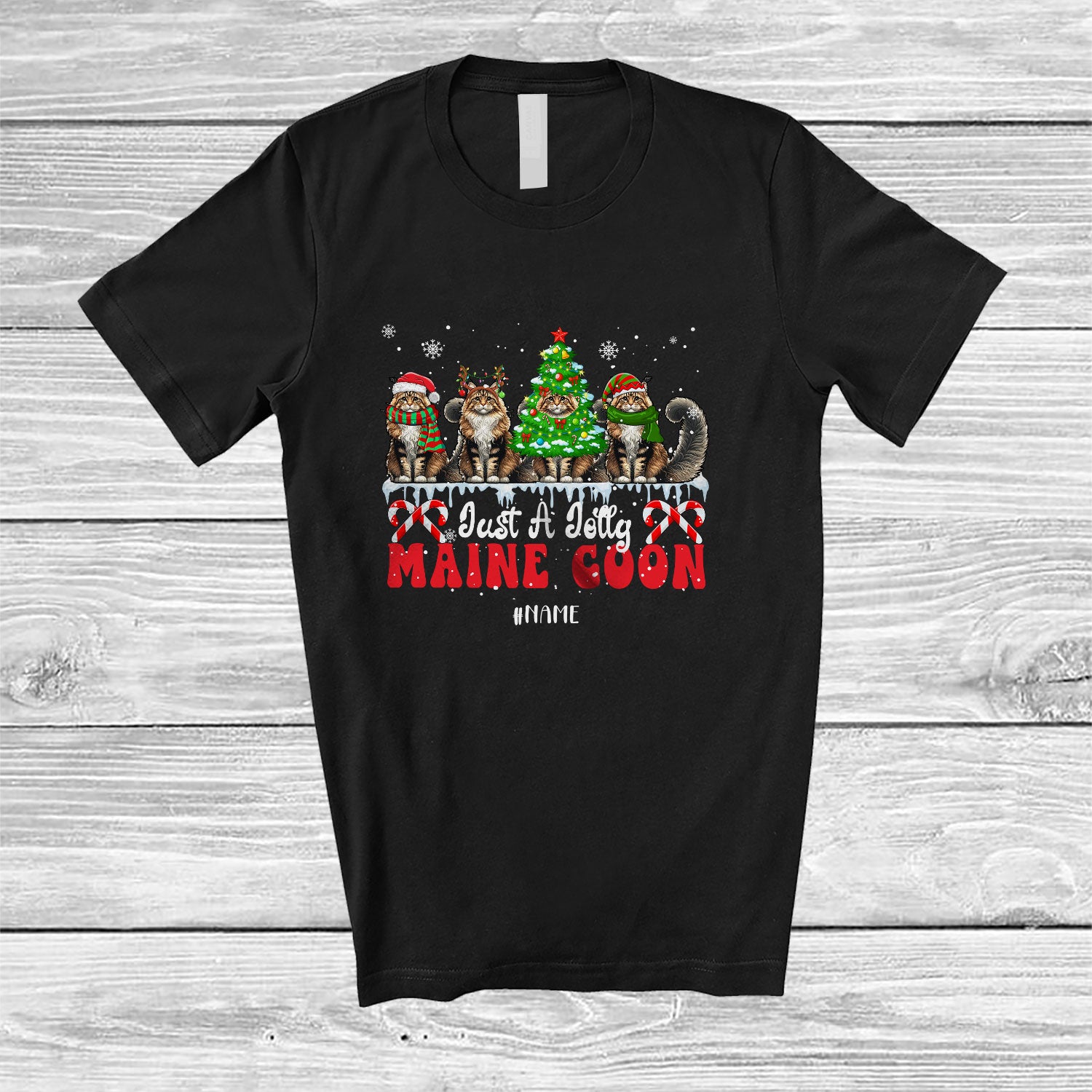 This Personalized Custom Name Just A Jolly Maine Coon; Adorable Christmas Tree Santa Elf Animal T-Shirt is great idea gift for your family, friends in this birthday, christmas, mother's day, father's day, patrick's day or any holiday.