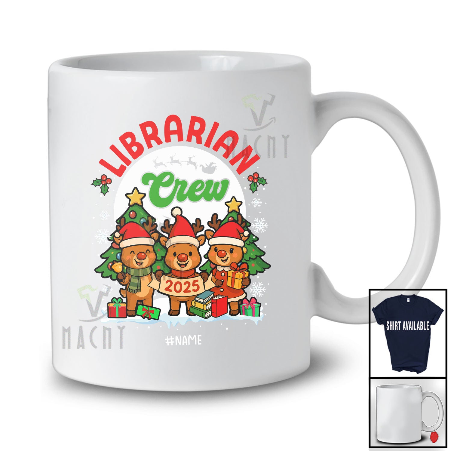 Personalized Custom Name Librarian Crew 2025; Amazing Christmas Three Reindeers; Family T-Shirt