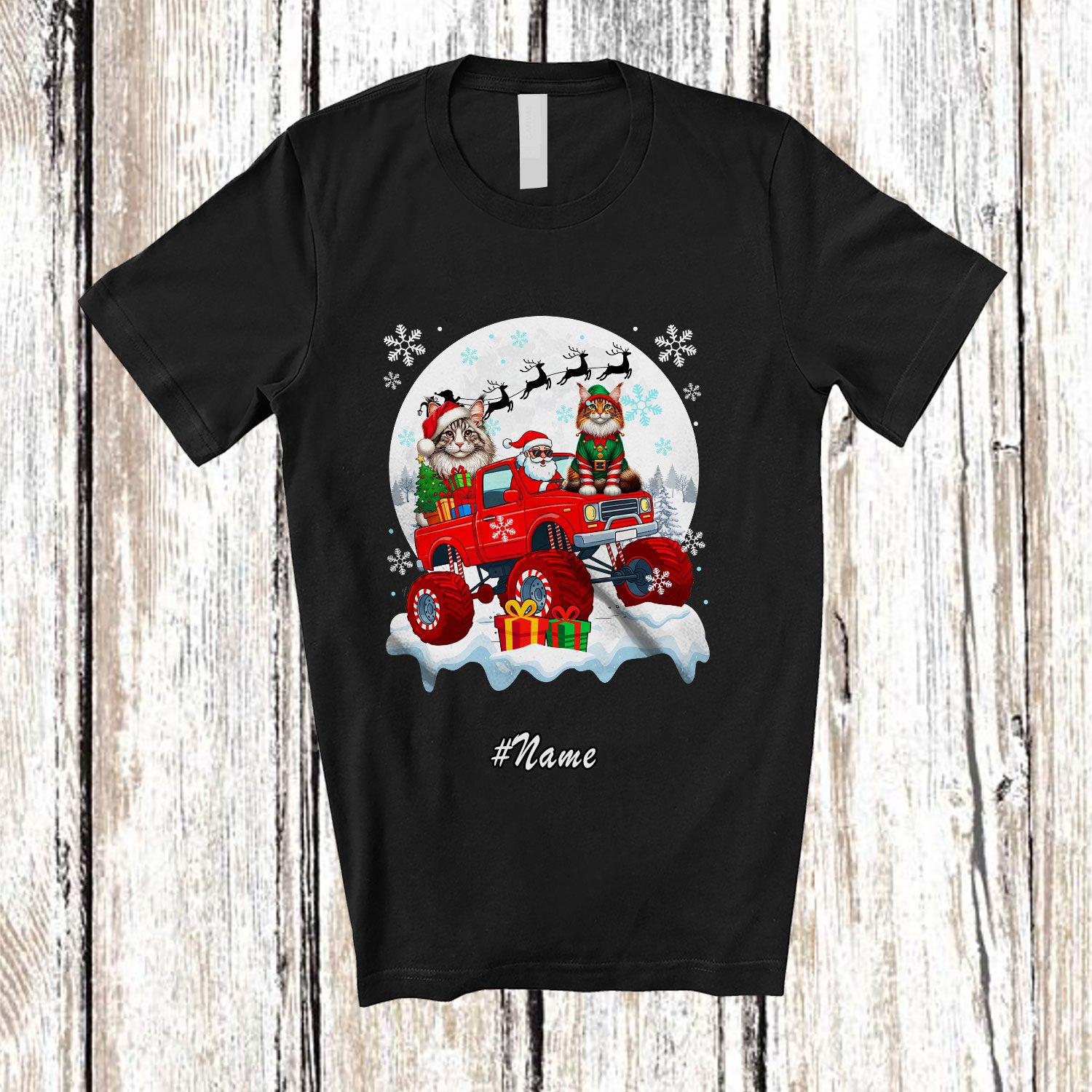 The Personalized Custom Name Maine Coon On Monster Truck; Lovely Christmas Moon Snow Animal T-Shirt destined to impress, and priced at only $12.95, for a limited time.