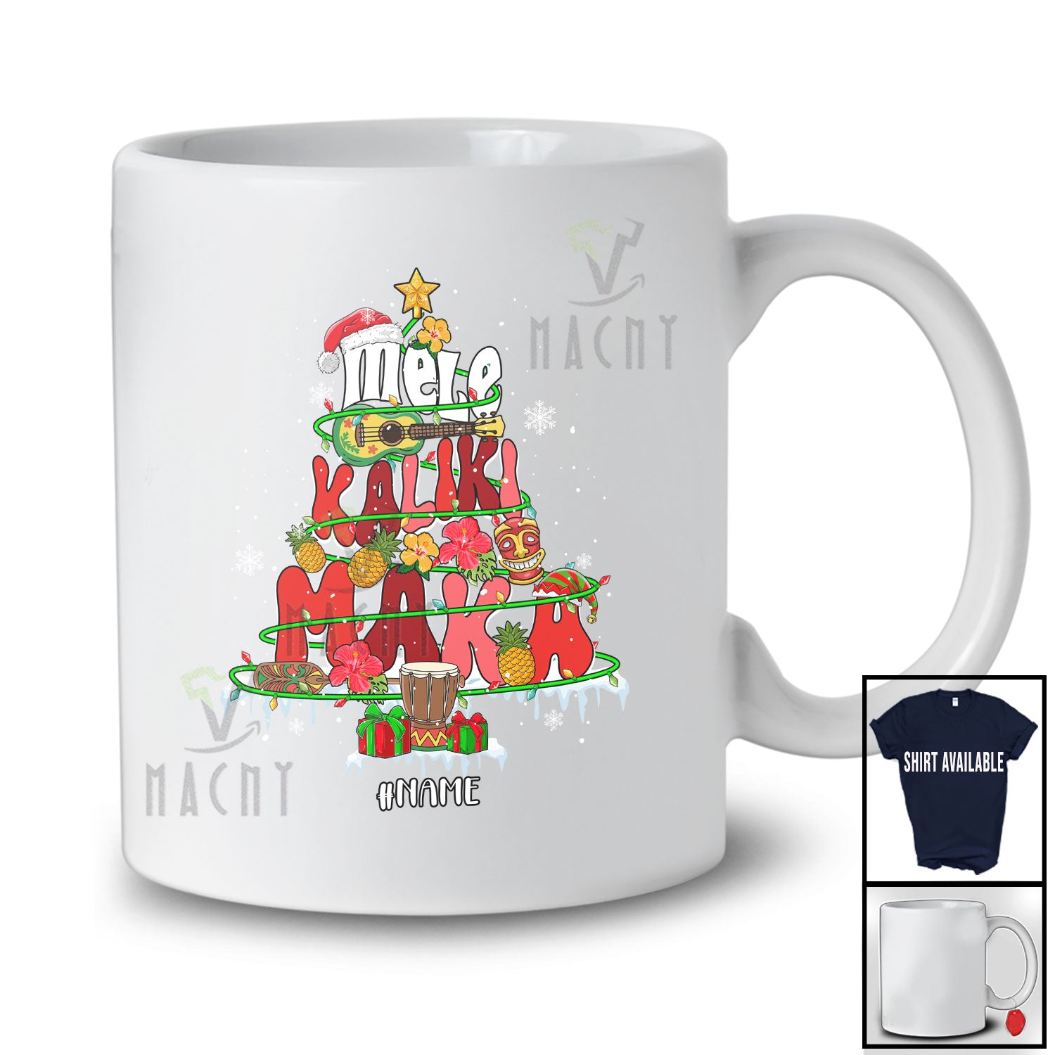 • Personalized Custom Name Mele Kalikimaka; Joyful Christmas Tree Lights Tropical Pineapple Hawaiian T-Shirt. This cotton t-shirt is a durable staple product with a classic fit. One of the most popular items, it has a relaxed style made for everyday and casual wear.