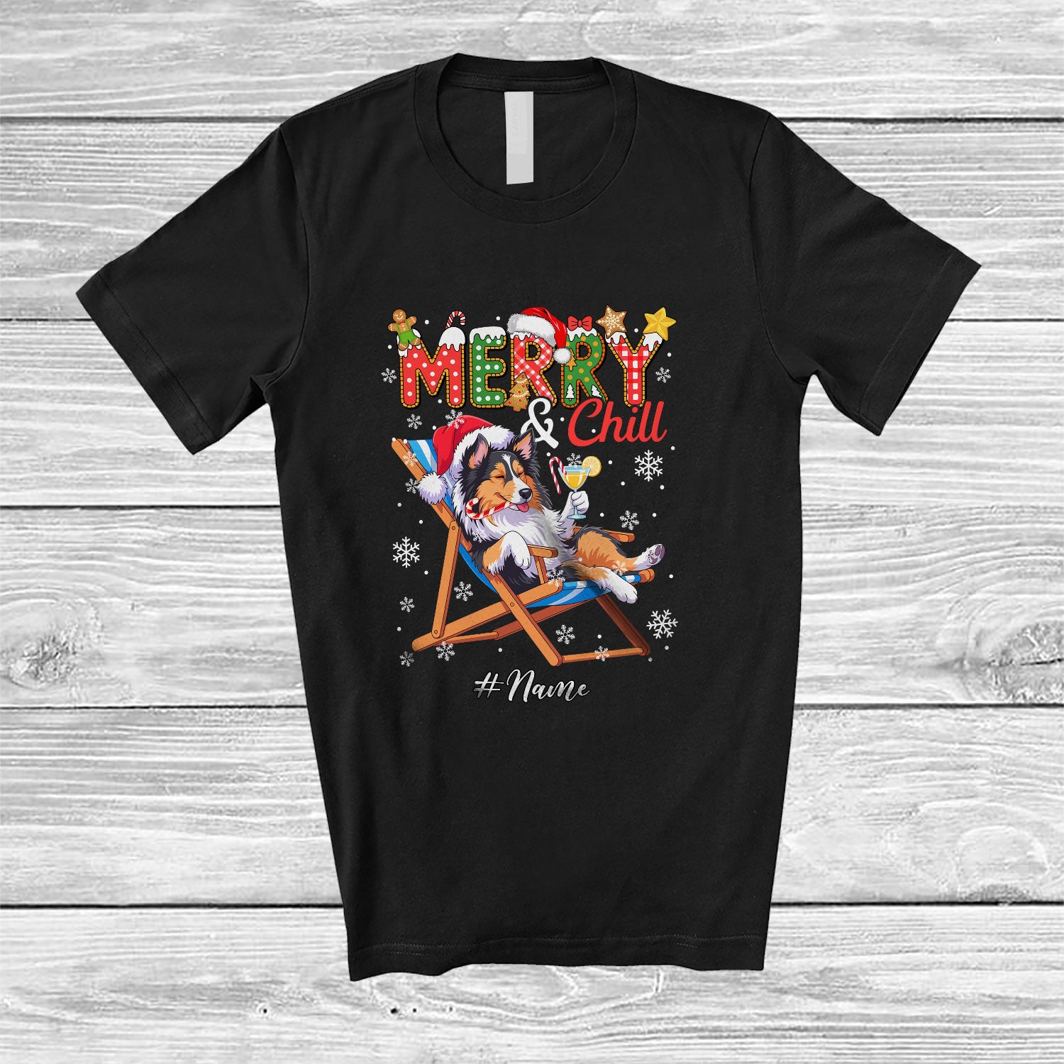 Personalized Custom Name Merry And Chill; Lovely Christmas Holiday Vacation Santa Shelties T-Shirt