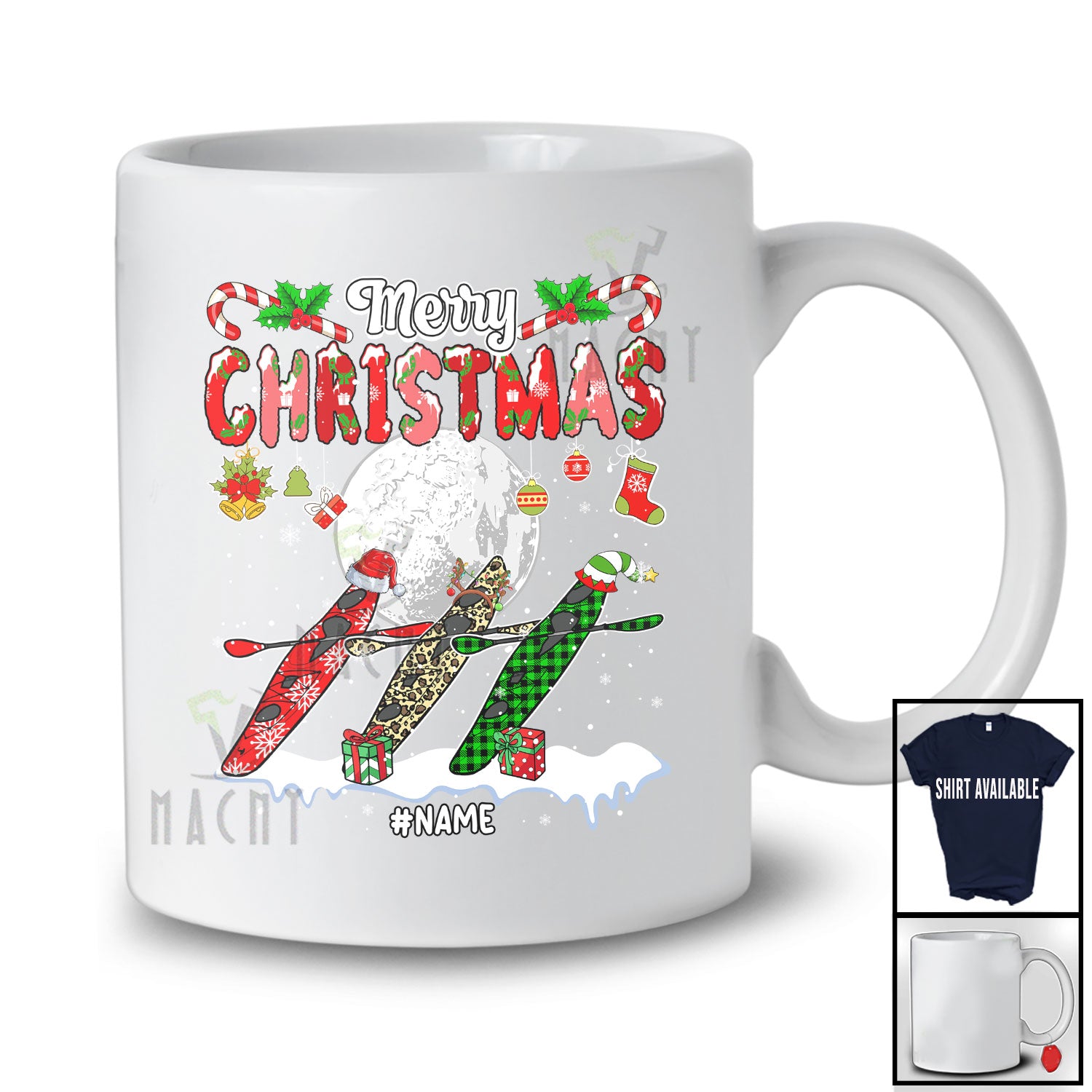 • Personalized Custom Name Merry Christmas; Awesome X-mas Three Plaid Leopard Kayak Boat T-Shirt. This cotton t-shirt is a durable staple product with a classic fit. One of the most popular items, it has a relaxed style made for everyday and casual wear.