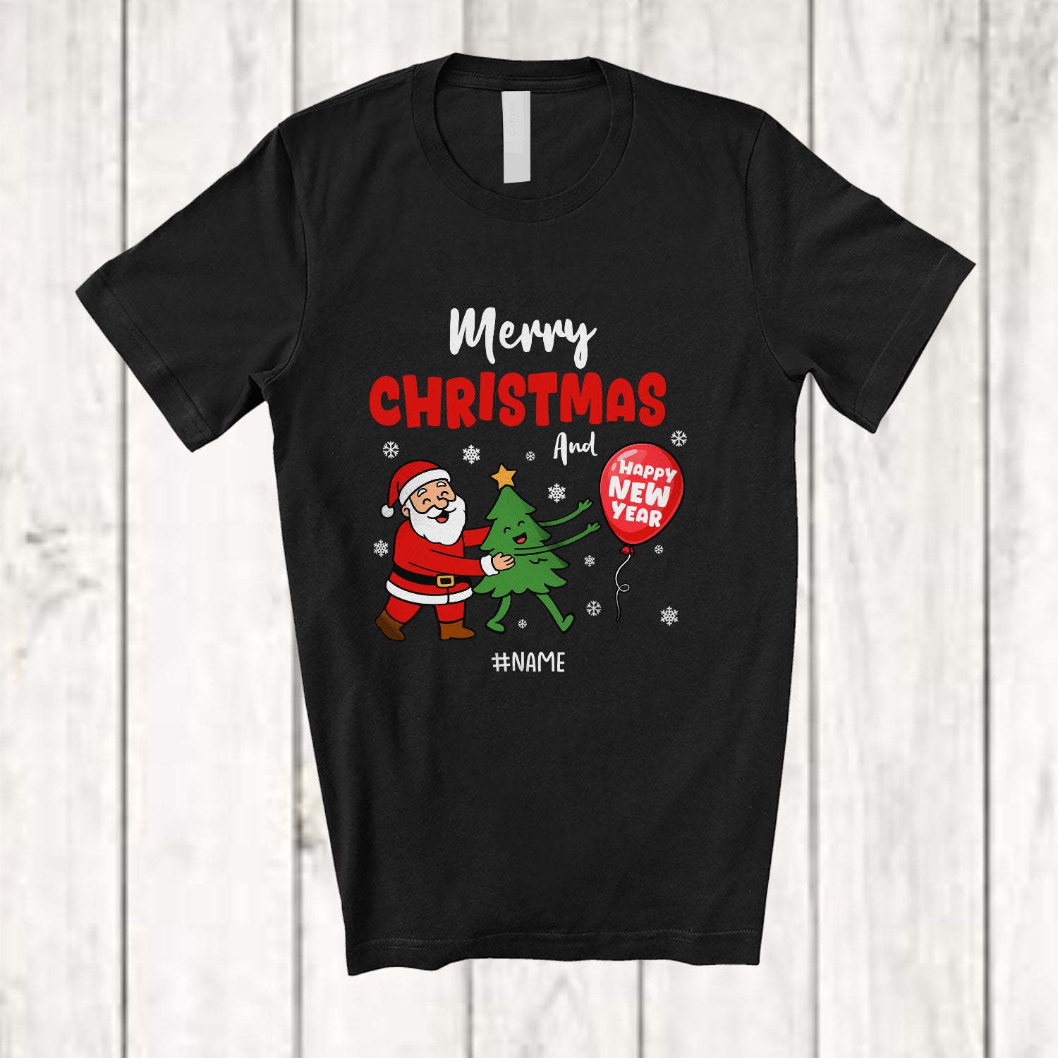 Personalized Custom Name Merry Christmas Happy New Year; Lovely X-mas Tree Santa Waiting T-Shirt
