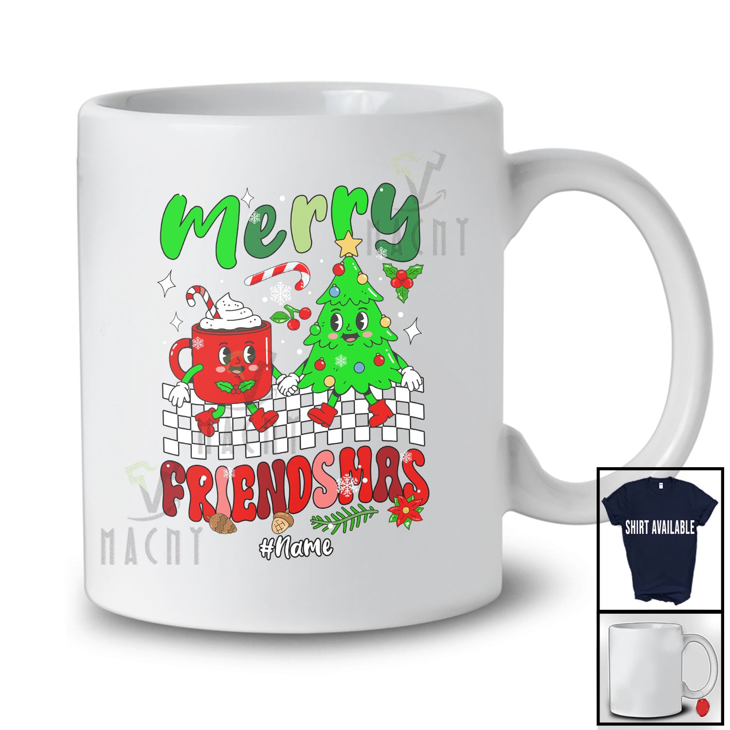 new MacnyStore - Personalized Custom Name Merry Friendsmas; Adorable Christmas Tree Coffee; Friends Family T-Shirt – Macnystore