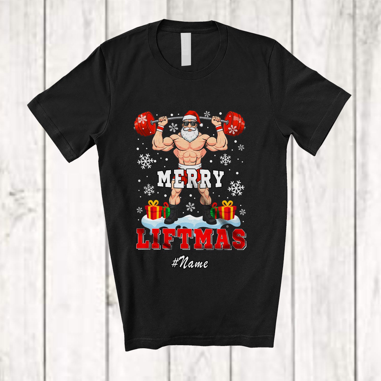Personalized Custom Name Merry Liftmas; Fantastic Christmas Santa Weight Lifting Workout Squad T-Shirt