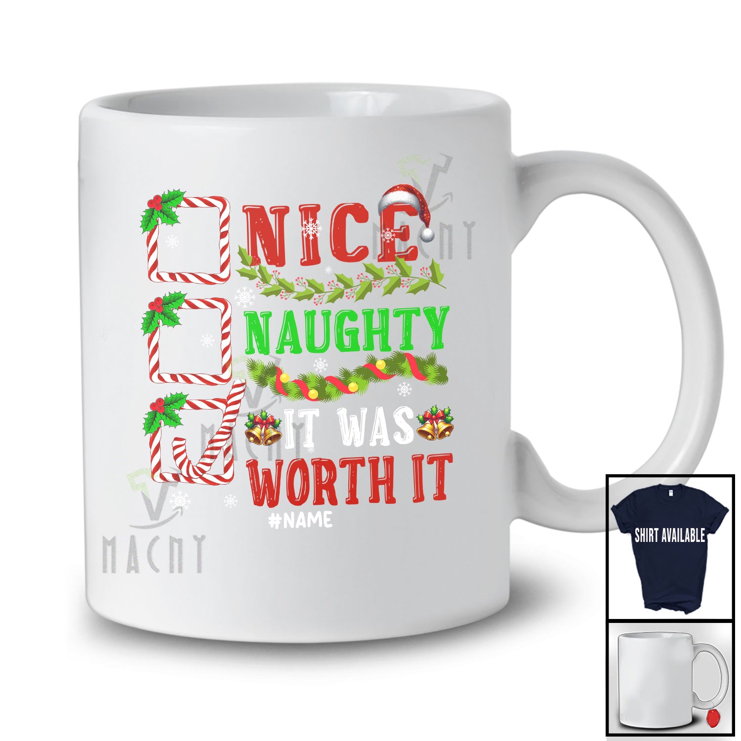 This Personalized Custom Name Nice Naughty It Was Worth It; Amusing Christmas List Santa T-Shirt is great idea gift for your family, friends in this birthday, christmas, mother's day, father's day, patrick's day or any holiday.
