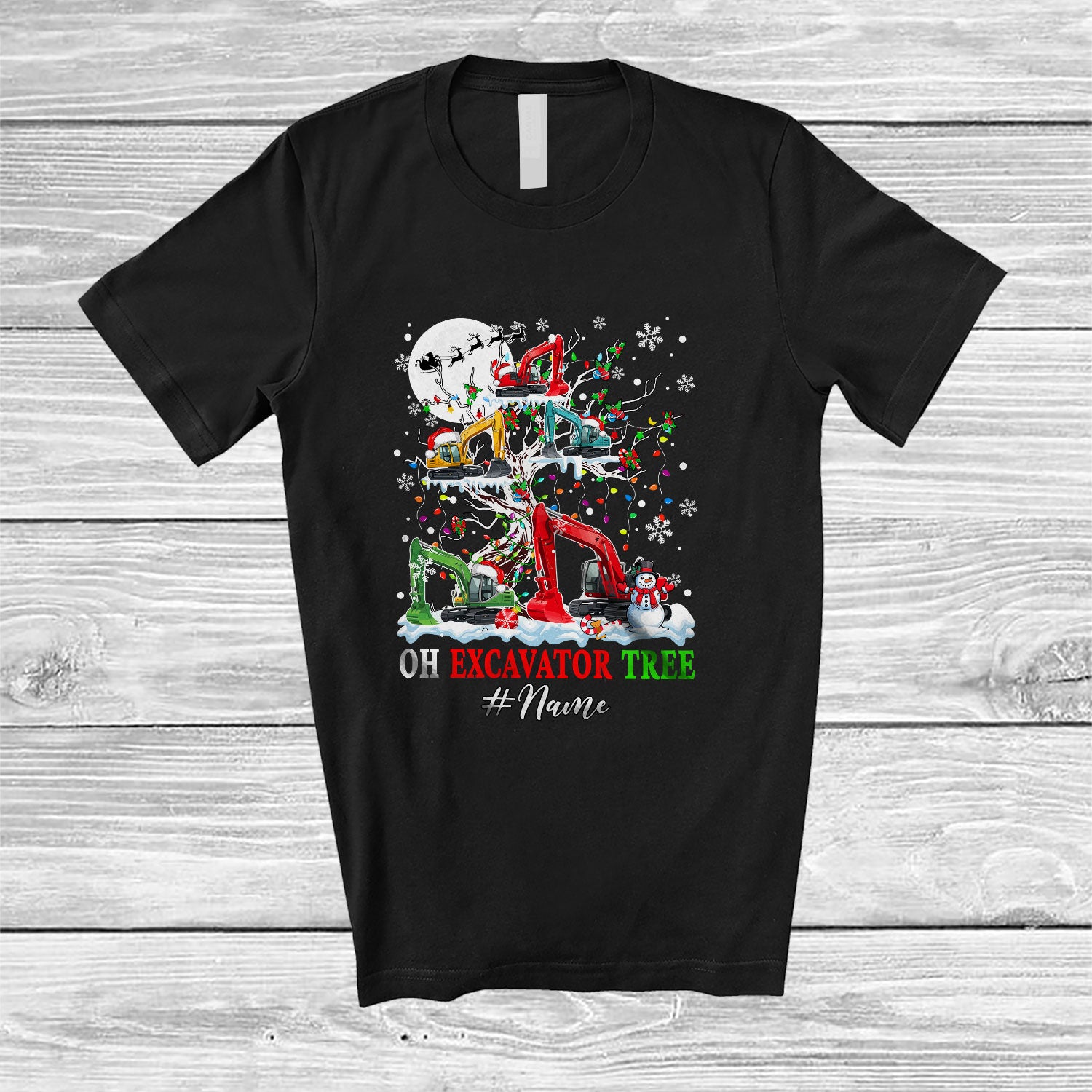 Personalized Custom Name Oh Excavator Tree; Lovely Snow Excavator On Christmas Tree T-Shirt. This cotton t-shirt is a durable staple product with a classic fit. One of the most popular items, it has a relaxed style made for everyday and casual wear.