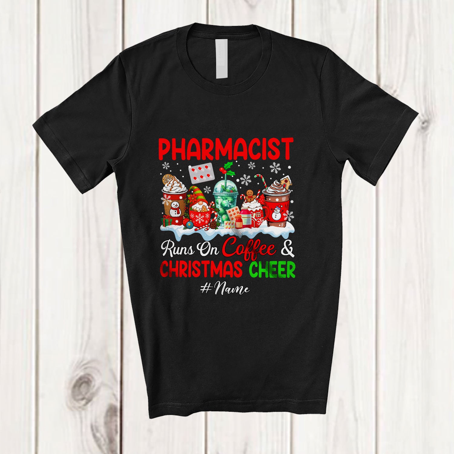 The Personalized Custom Name Pharmacist Runs On Coffee Christmas Cheer; Lovely Snow Jobs T-Shirt was built with people like you in mind. Something to keep you happy. Every. Single. Day.