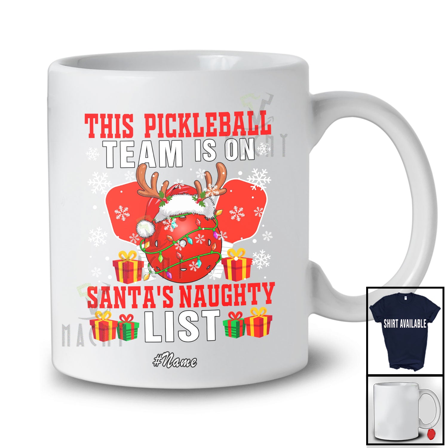 Personalized Custom Name Pickleballs Team On Santa's Naughty List; Joyful Christmas Player T-Shirt