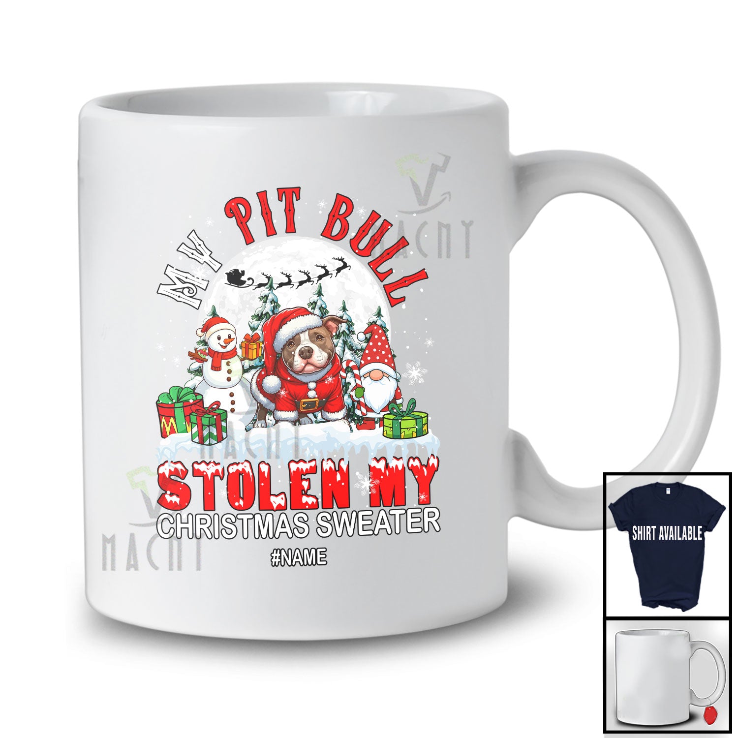 Personalized Custom Name Pit Bull Stolen My Christmas Sweater; Joyful Moon Santa Gnome T-Shirt