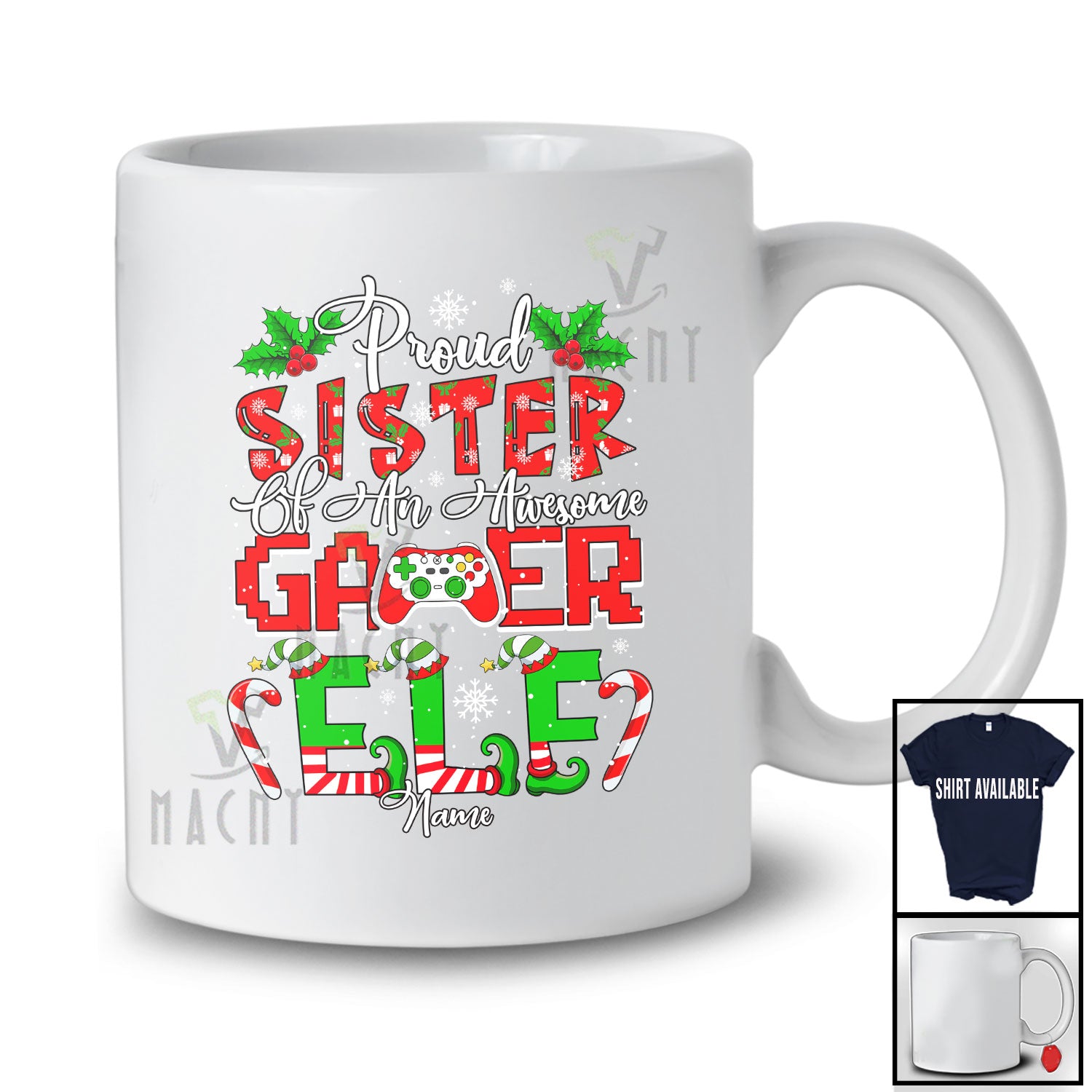 This Personalized Custom Name Proud Sister Of Gamer Elf; Joyful Christmas Mother's Day Family T-Shirt is great idea gift for your family, friends in this birthday, christmas, mother's day, father's day, patrick's day or any holiday.