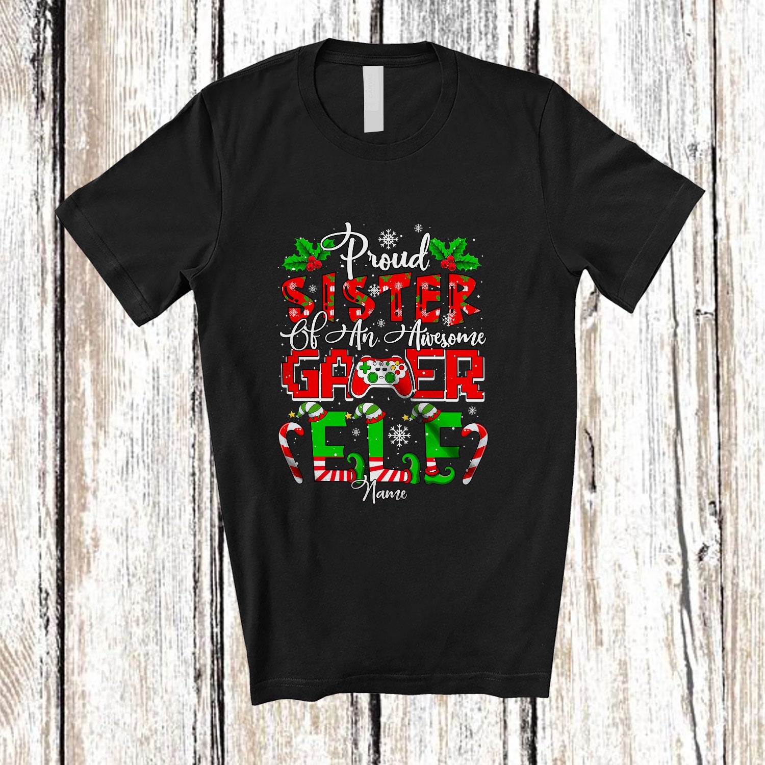 Personalized Custom Name Proud Sister Of Gamer Elf; Joyful Christmas Mother's Day Family T-Shirt