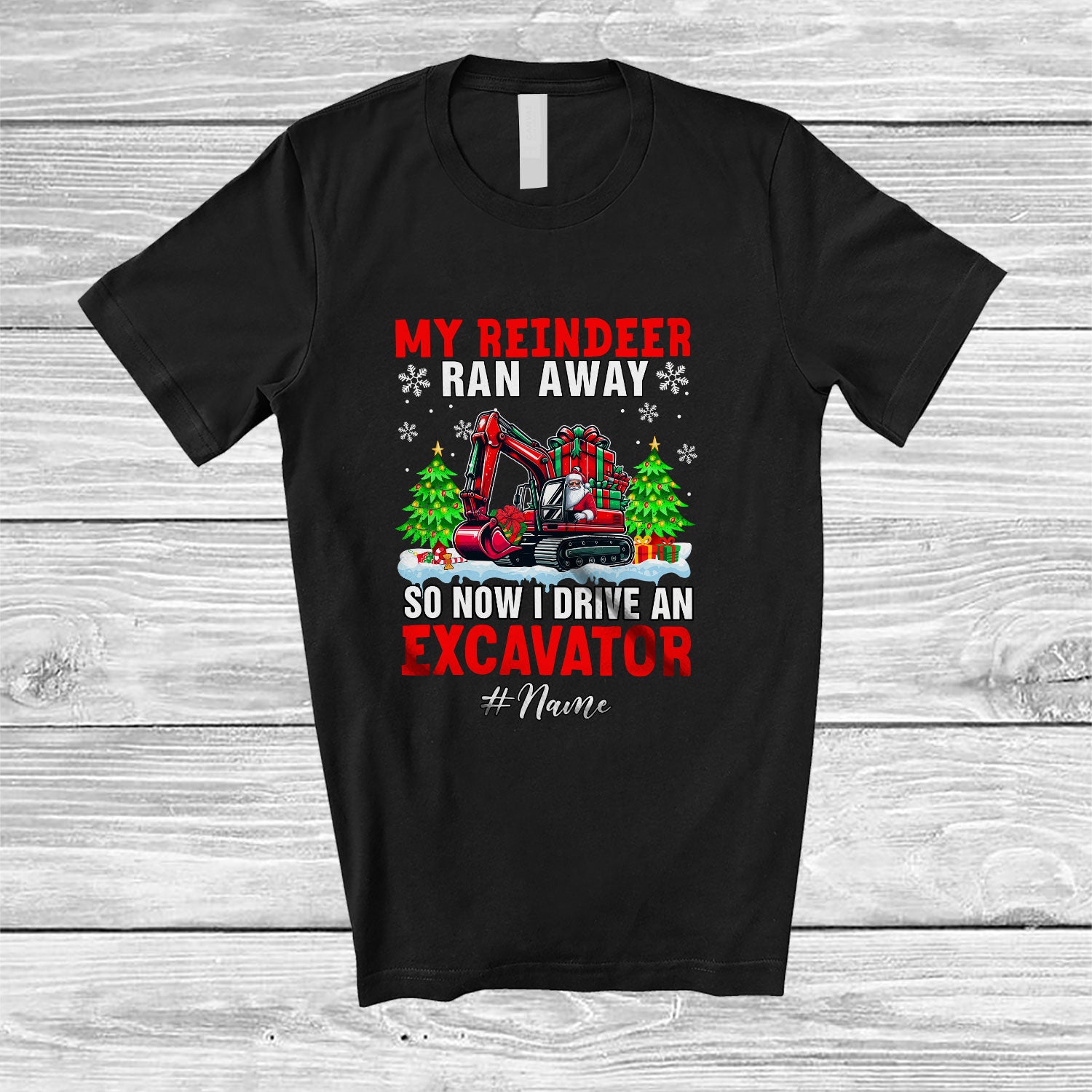 • Personalized Custom Name Reindeer Ran Away I Drive An Excavator; Joyful Christmas Santa Driver T-Shirt. This cotton t-shirt is a durable staple product with a classic fit. One of the most popular items, it has a relaxed style made for everyday and casual wear.