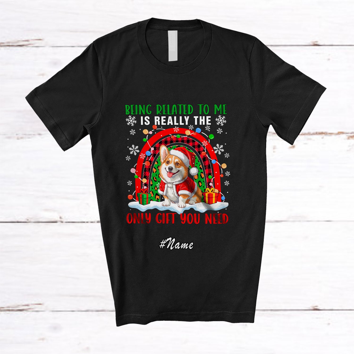 Personalized Custom Name Related To Me Is Really Only Gift; Lovely Christmas Corgi Plaid Rainbow T-Shirt