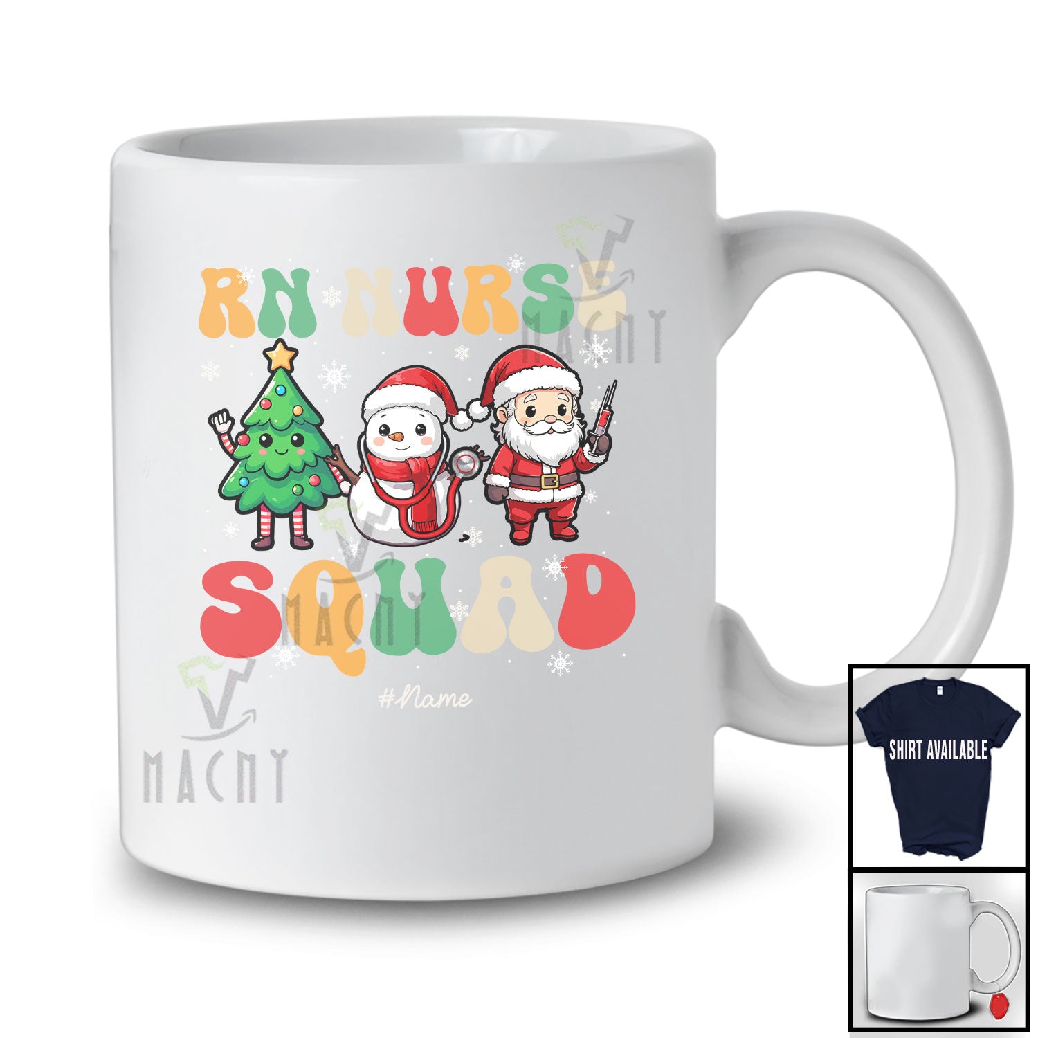 new MacnyStore - Personalized Custom Name RN Nurse Squad; Humorous Christmas Tree Snowman Santa T-Shirt – Macnystore