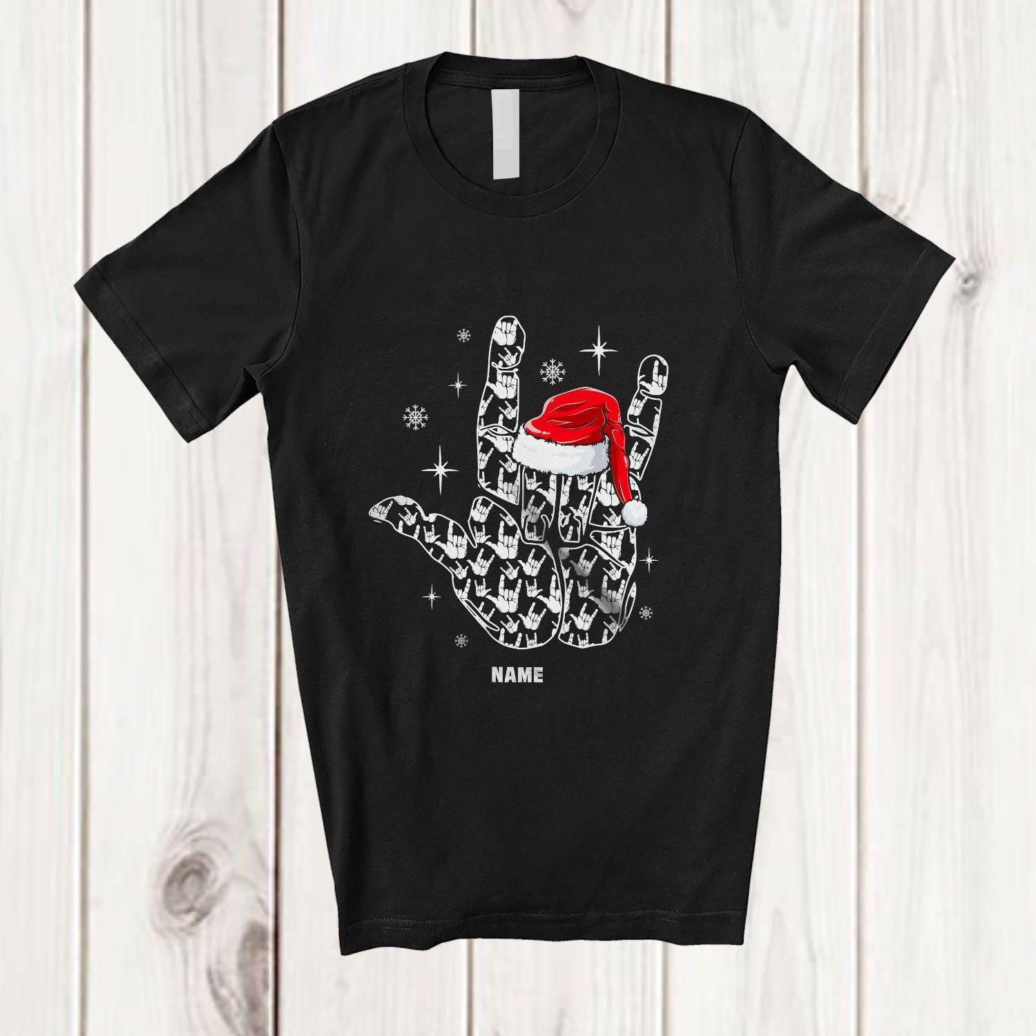 Personalized Custom Name Rock Sign Language Hand; Amusing Christmas Rock Music Lover T-Shirt