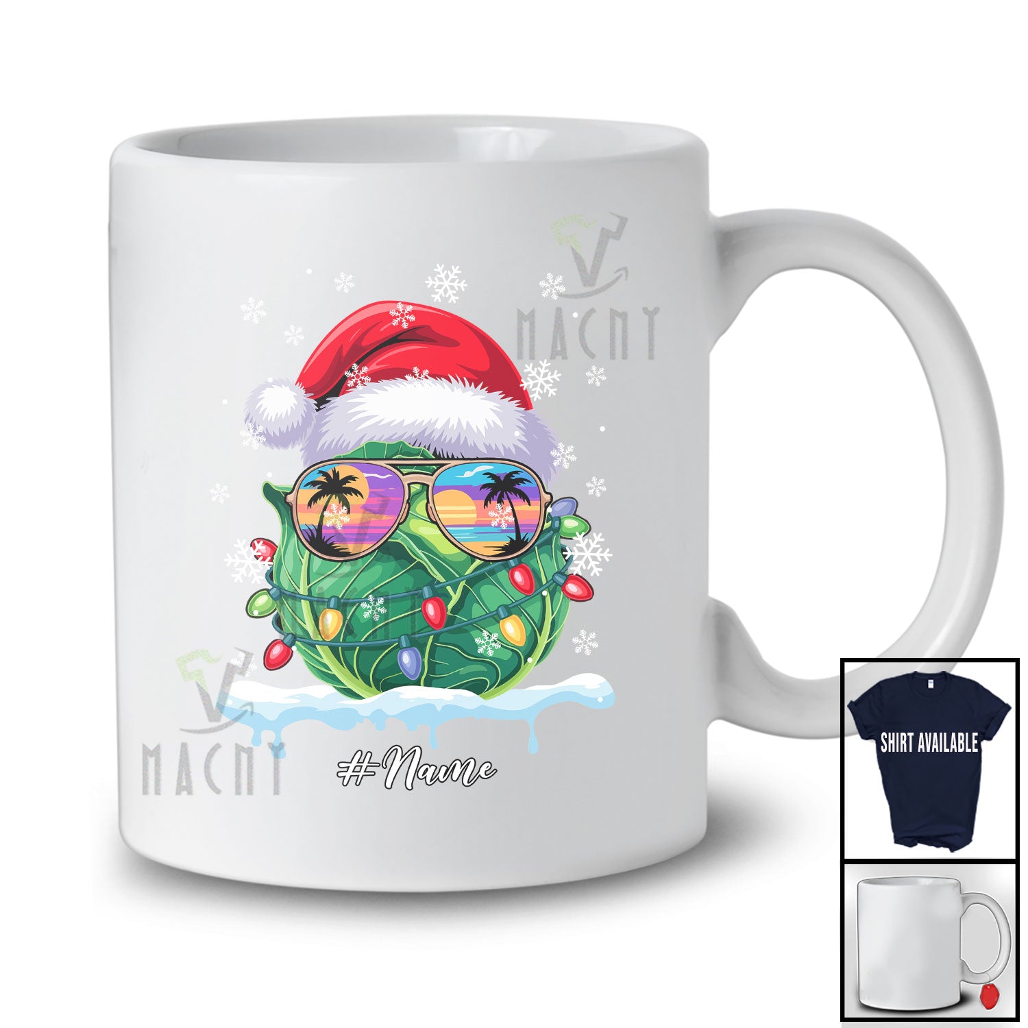 Personalized Custom Name Santa Cabbage Sunglasses; Joyful Christmas Lights Family Group T-Shirt. This cotton t-shirt is a durable staple product with a classic fit. One of the most popular items, it has a relaxed style made for everyday and casual wear.