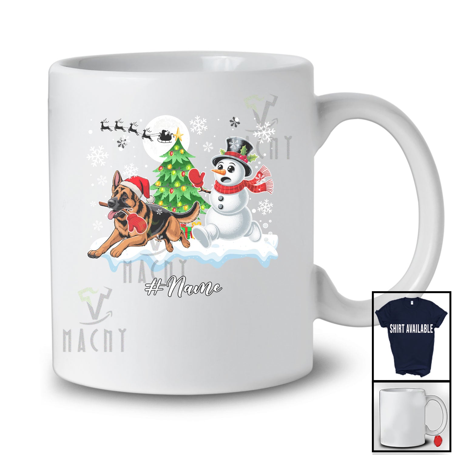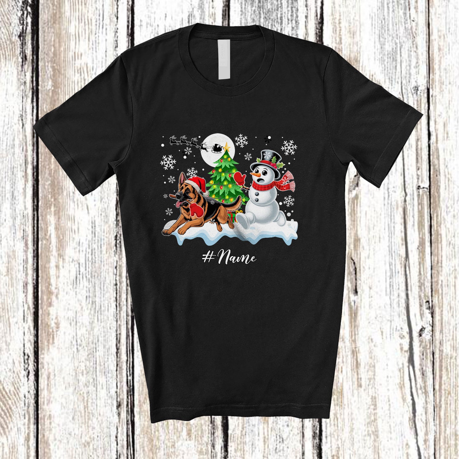 The Personalized Custom Name Santa German Shepherd Snowman; Lovely Christmas Tree Friends Family T-Shirt destined to impress, and priced at only $12.95, for a limited time.