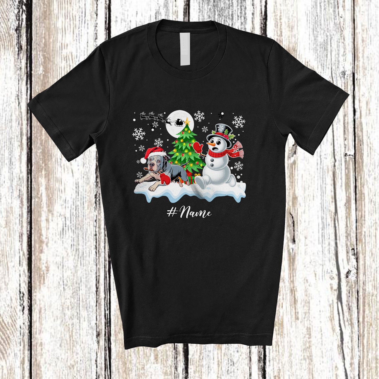 Personalized Custom Name Santa Pit Bull Snowman; Lovely Christmas Tree Friends Family T-Shirt
