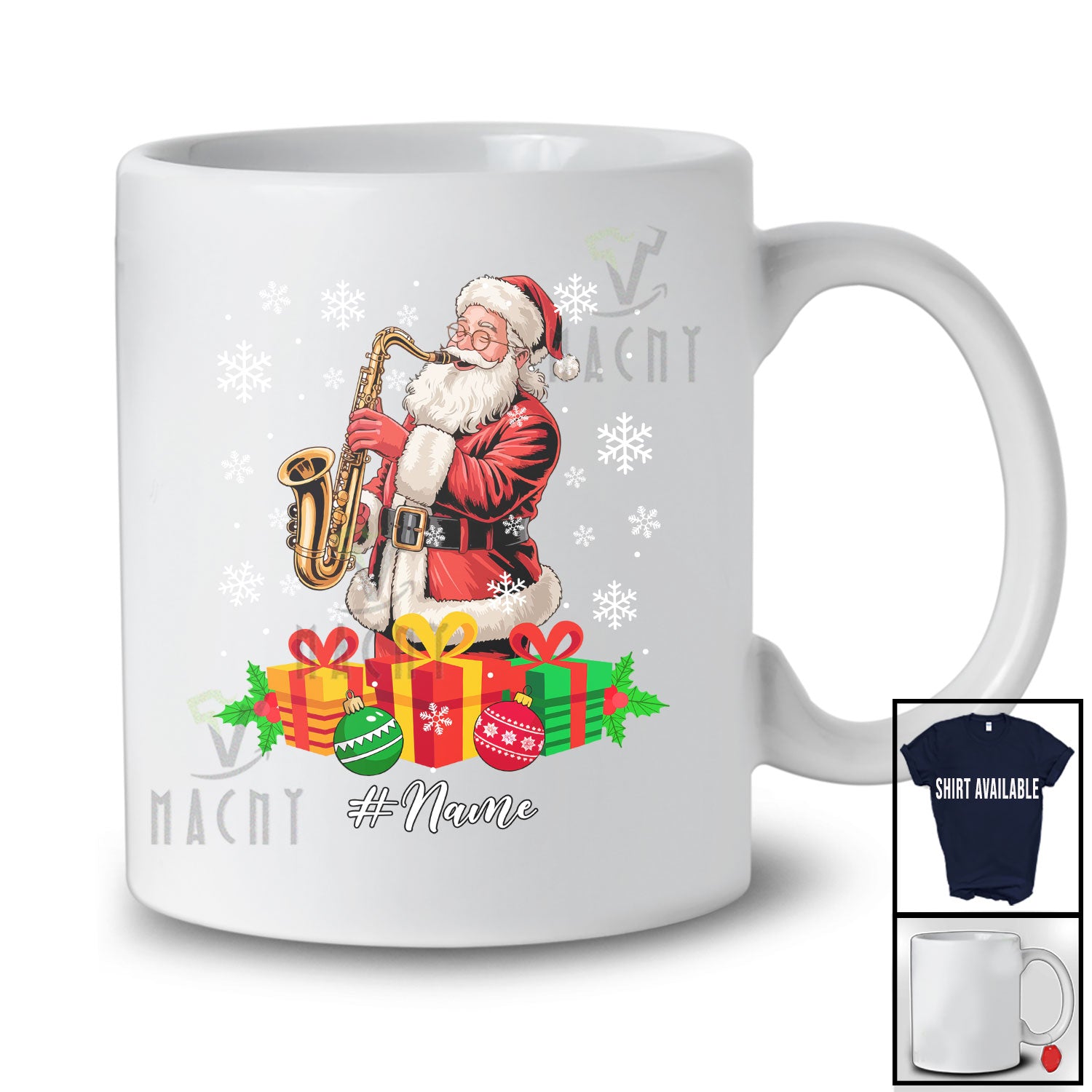 new MacnyStore - Personalized Custom Name Santa Playing Saxophone; Amusing Christmas Musical Instruments Player T-Shirt – Macnystore
